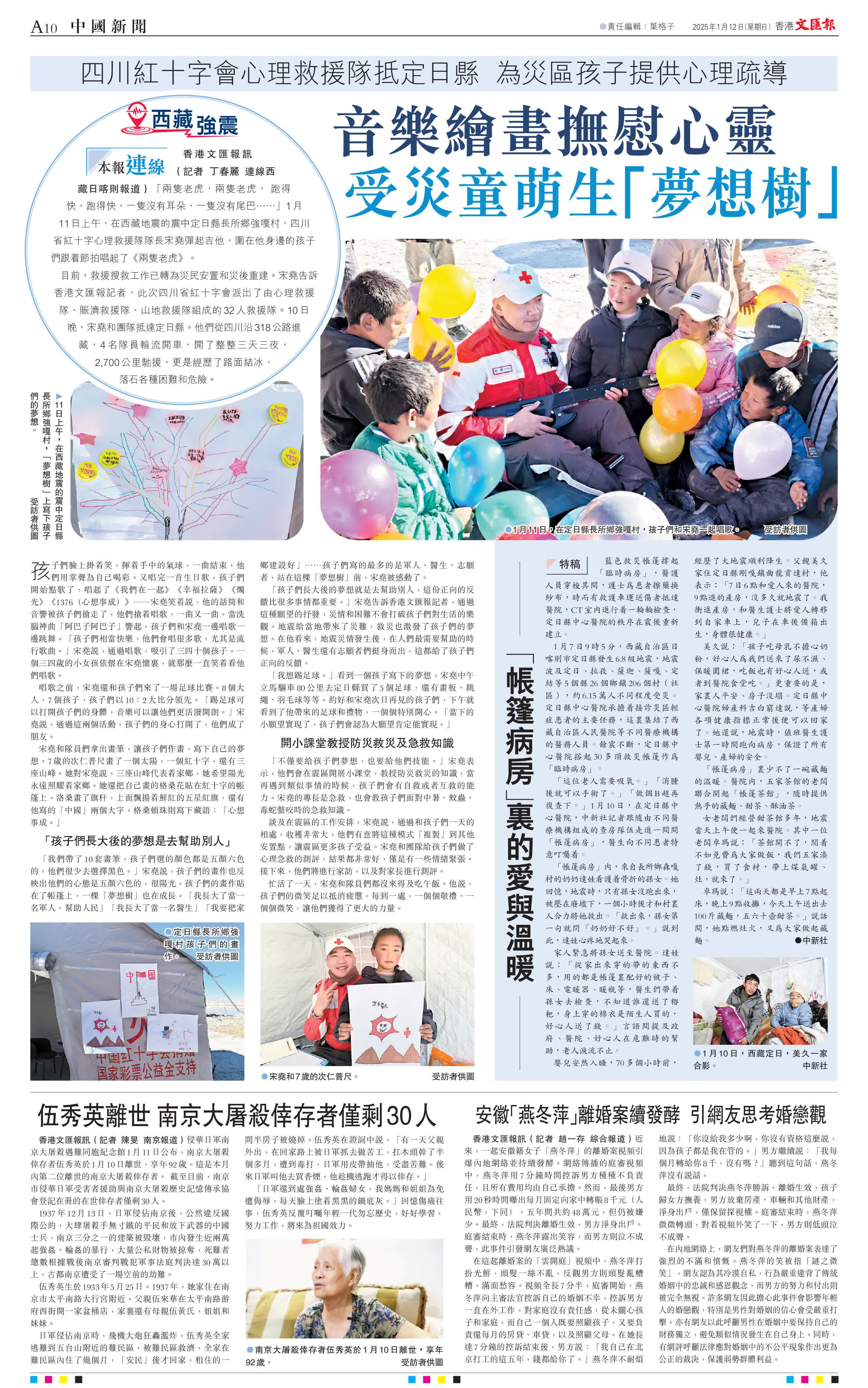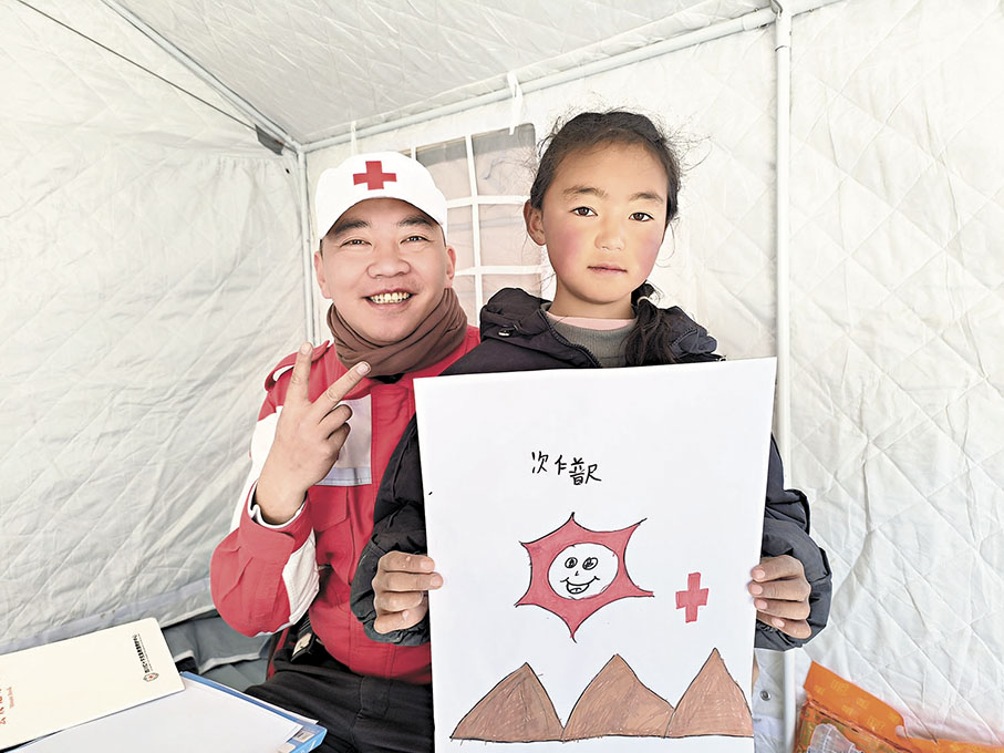 目前,救援搜救工作已轉為災民安置和災後重建。宋堯告訴香港文匯報記者,此次四川省紅十字會派出了由心理救援隊、賑濟救援隊、山地救援隊組成的32人救援隊。10日晚,宋堯和團隊抵達定日縣。他們從四川沿318公路進藏,4名隊員輪流開車,開了整整三天三夜,2,700公里馳援,更是經歷了路面結冰、落石各種困難和危險。