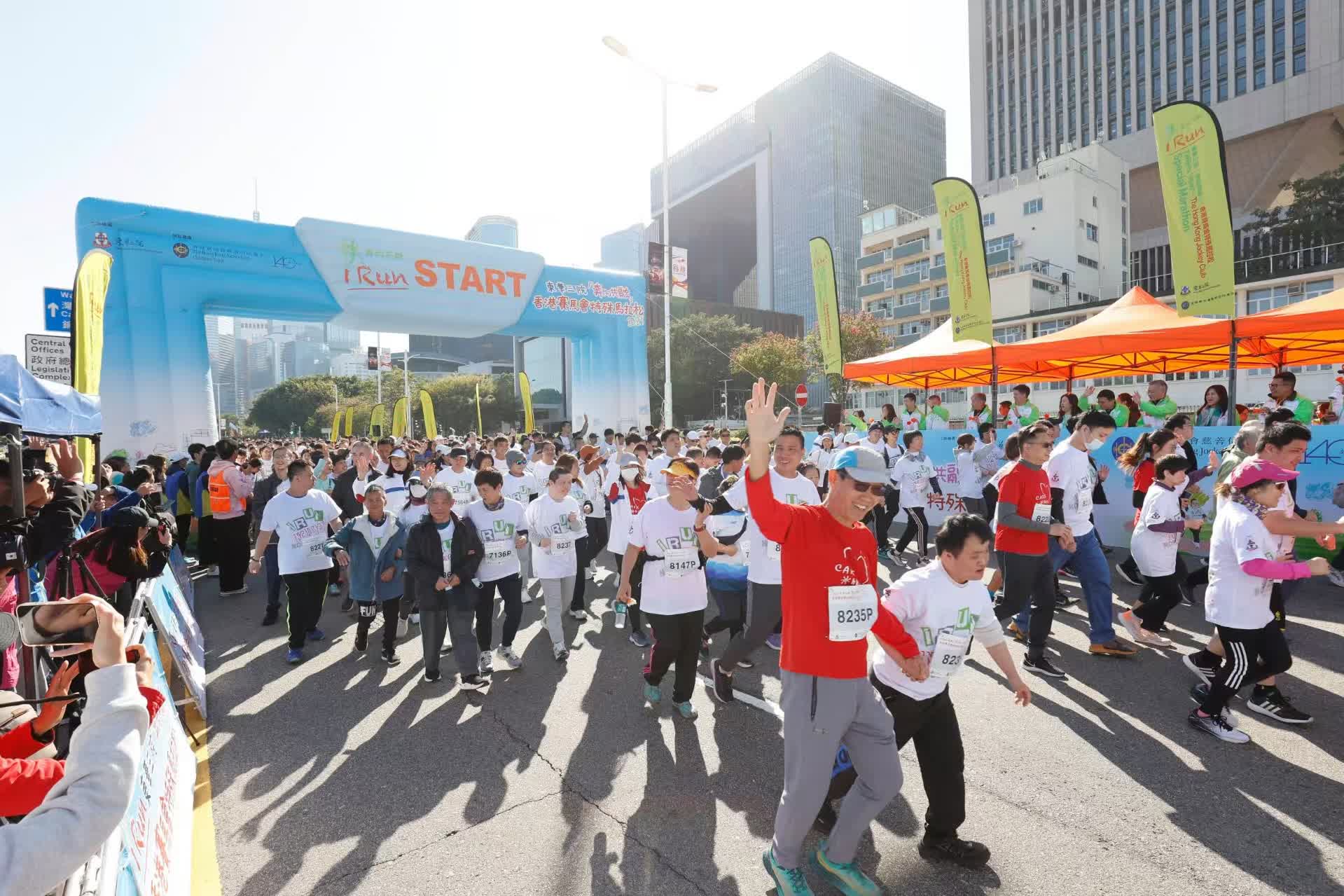 此外,大會今年繼續為6至11歲智障兒童及其家人舉辦1.5公里「傳·家跑」項目,鼓勵智障人士與家人一同參與運動,增進彼此感情。今屆吸引逾200個家庭參加,參與人數創歷屆新高。是次特殊馬拉松更招募超過700名義工,包括馬會義工隊CARE@hkjc成員擔任伴跑員或場地支援,一同與參加者分享跑步的樂趣。