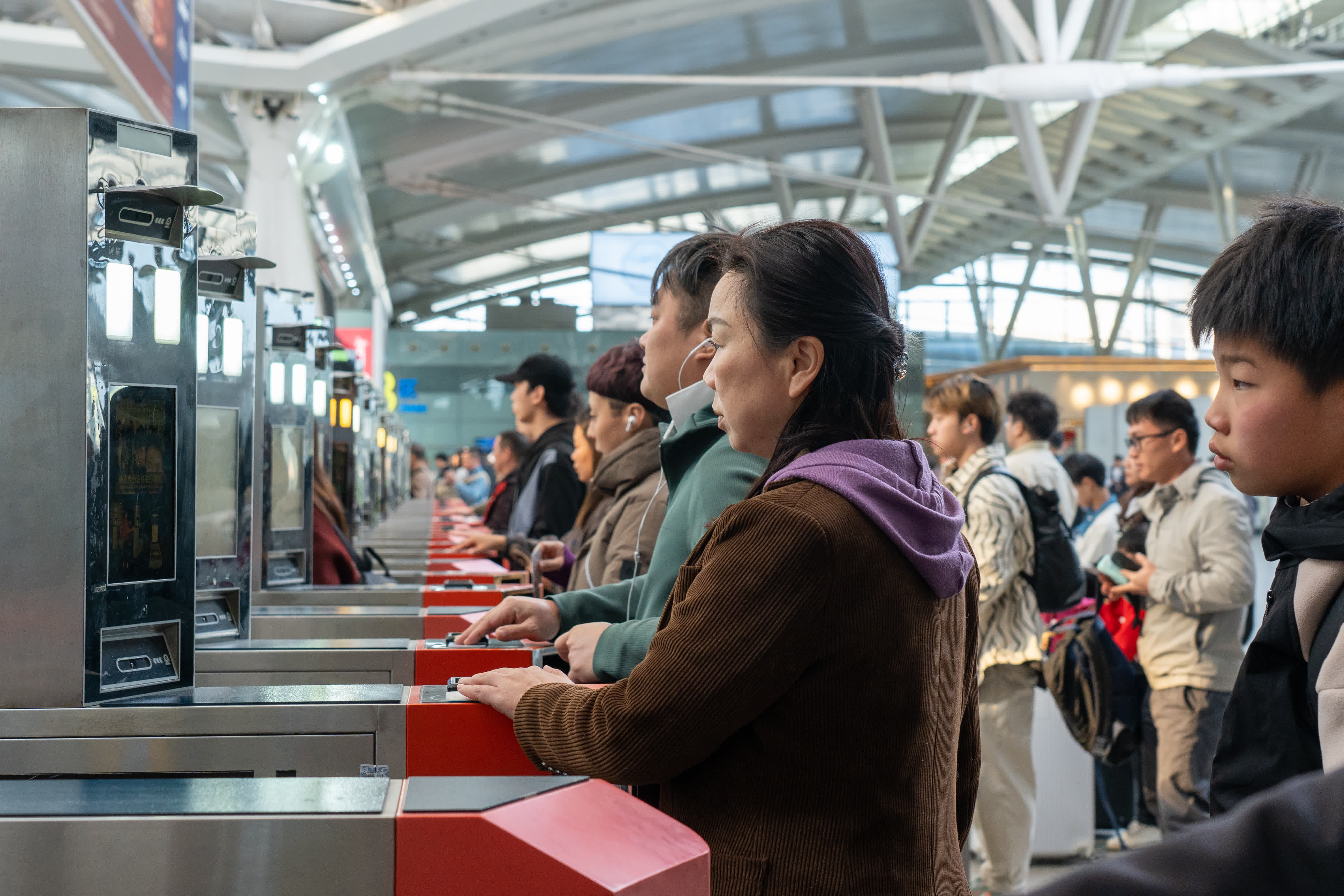 深圳北站是華南地區客流量僅次於廣州南站的高鐵站,也是港人北上出行最大中轉站之一。今年春運,深圳北站為旅客在候車大廳配備了飲水處、免費熱水和充電服務,引入了智慧安檢儀、自助快遞櫃等現代化服務設施,並延長了出站通道,確保旅客安全、便捷地出行。此外,該站還開展了「輕鬆行」項目合作,在出站口設立了服務點,提供值機和行李託運服務。