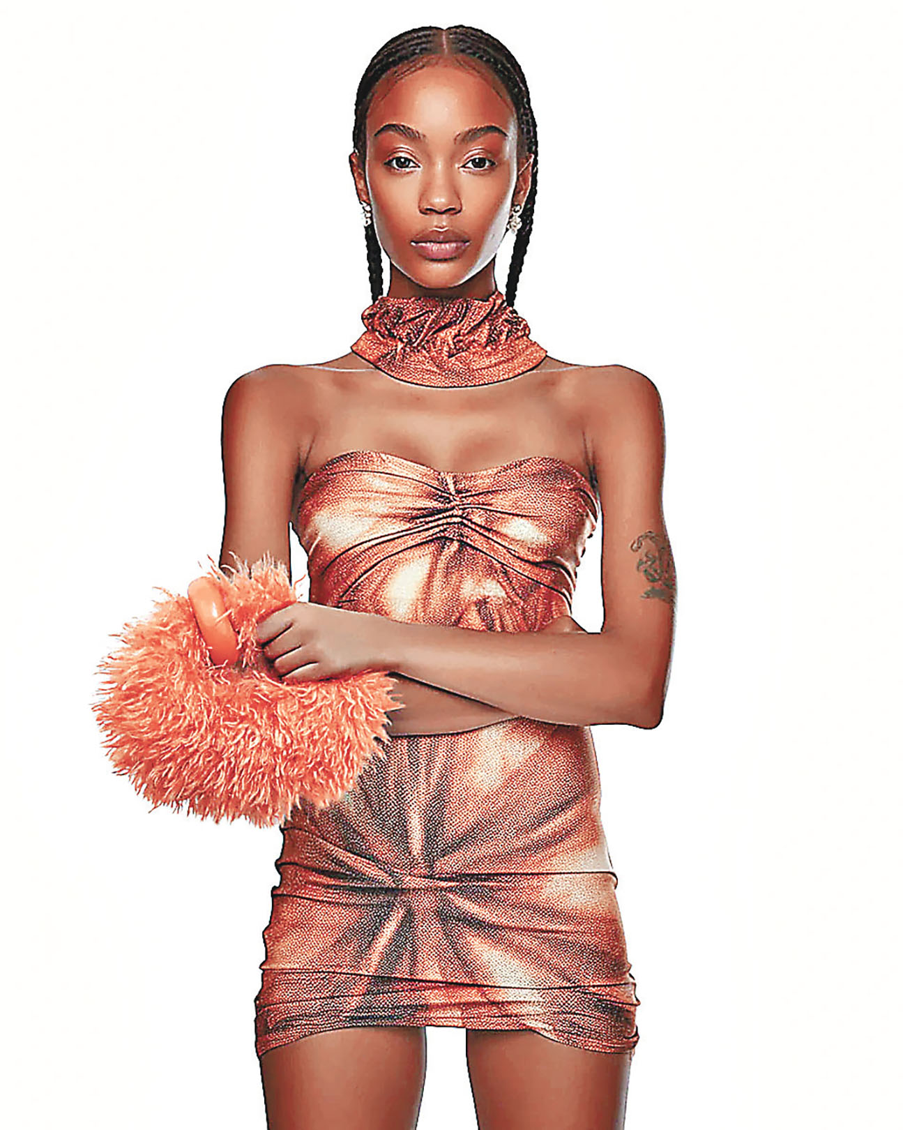 主要材質為人造毛皮,橙色毛毛襯上銀色配扣非常搶眼,小廢包的容量適合放置粉餅和唇膏。