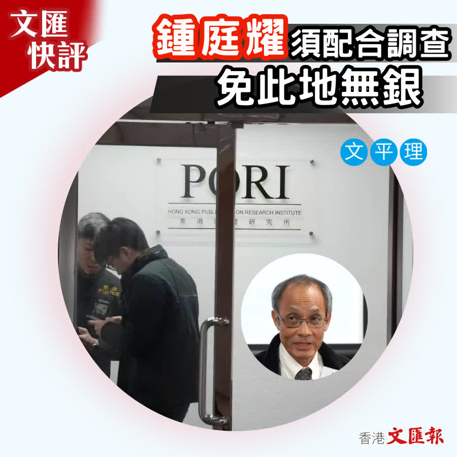 警方國安處在上月向包括「香港民意研究所」前副行政總裁鍾劍華在內的6名亂港人士發出通緝令,並正追查鍾劍華的資金流向。昨日,警方國安處到「香港民研」主席及行政總裁鍾庭耀住所調查,懷疑他協助在逃人士,並將他帶走作進一步調查。香港是法治社會,警方依法調查鍾庭耀有否協助潛逃者,均真分明、有理有節,鍾庭耀須如實交代、配合調查,以免此地無銀、欲蓋彌彰。