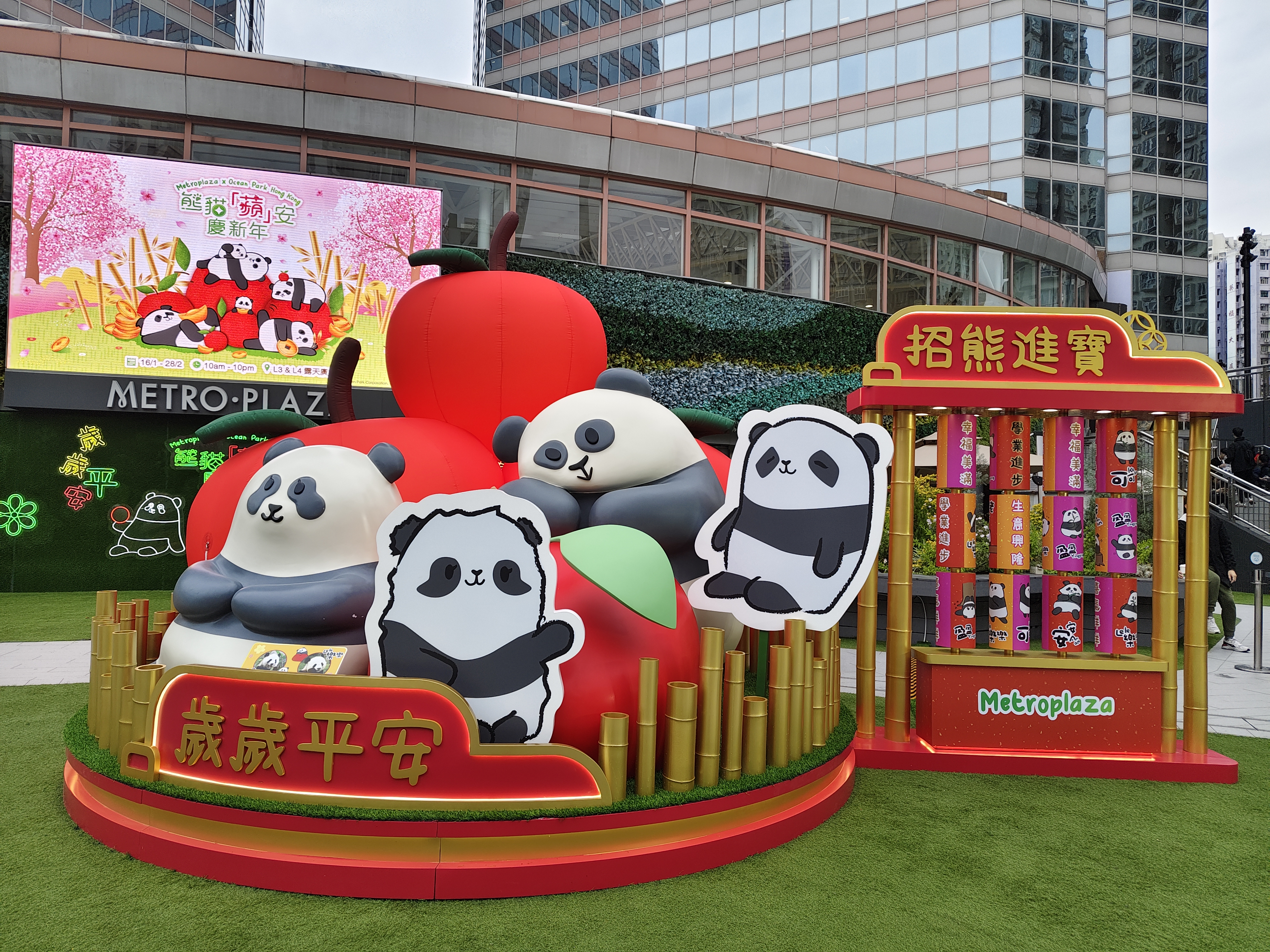 全城關注的大熊貓「安安」、「可可」、「盈盈」、「樂樂」和一對龍鳳胎寶寶「家姐」、「細佬」的萌度持續上升!今個新春,由1月16日至2月28日,新都會廣場特別聯乘海洋公園全新大熊貓IP呈獻「熊貓『蘋』安慶新年」,當中較為矚目是位於L4露天廣場的三大喜慶打卡位,如3米高的龍鳳胎寶寶於竹林中快樂賣萌、「盈盈」及「樂樂」陪伴大家轉轉吉祥竹筒,還有「安安」、「可可」坐鎮的「蘋」安幸運求籤筒,讓一家大細來沾沾熊貓的可愛旺氣!