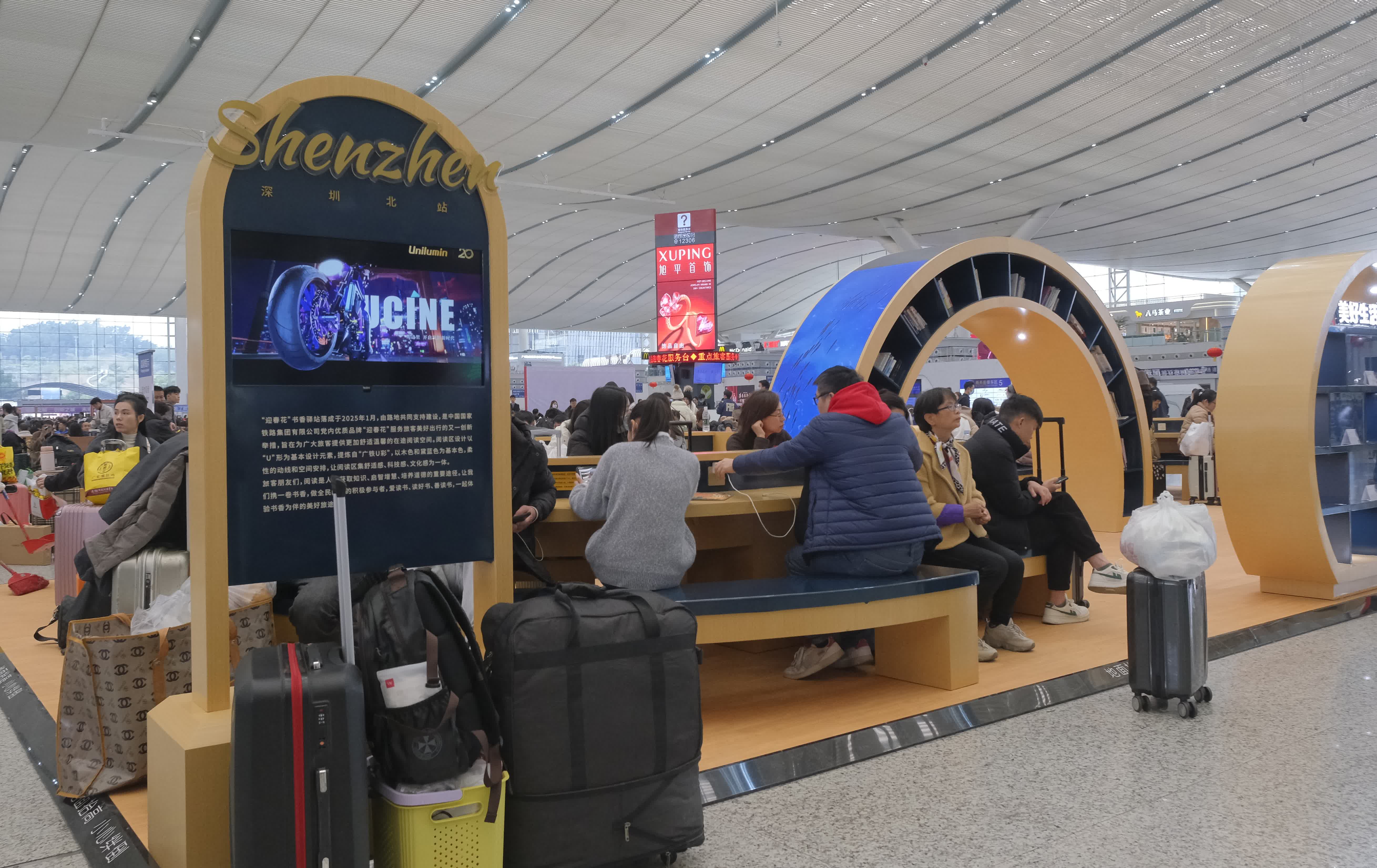 (香港文匯網記者 郭若溪)1月14日春運首日,全國重要的鐵路樞紐深圳北站候車大廳,以「科技魔方+書香驛站+展陳展播」煥新亮相,打造「深圳故事」城市形象展示空間,為廣大旅客帶來全新體驗,成為旅客們點讚稱讚的「網紅打卡地」。