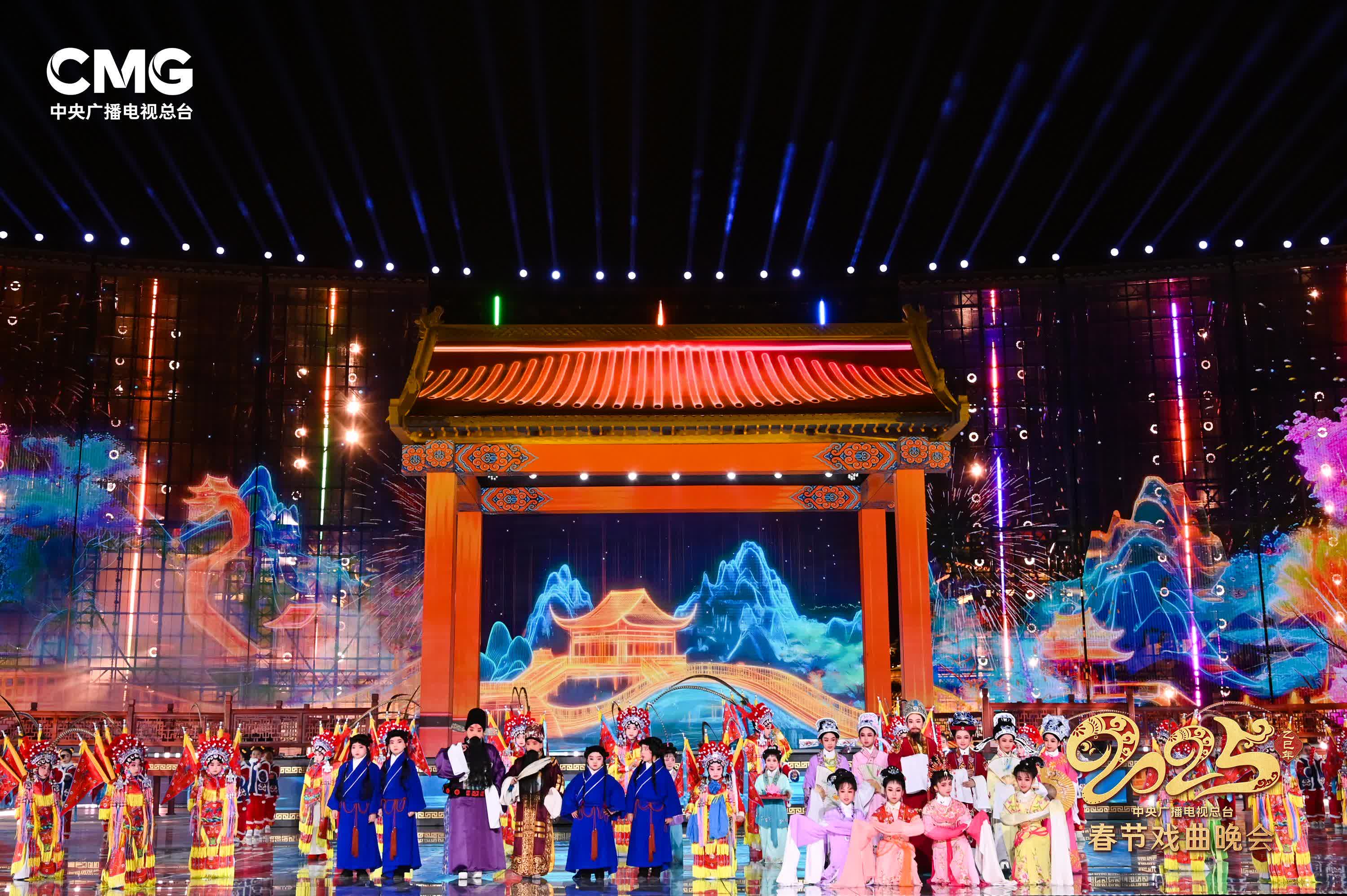 節目內容上,今年春節戲曲晚會還充分開拓了「戲曲+」的無限可能,利用戲曲+現代科技、戲曲+新媒體技術、戲曲+遊戲動漫、戲曲+電影等跨界手段,通過情景短劇、文博AI聯動、海外跨屏互動等方式,將戲曲的深厚底蘊與多元魅力融合。在沉浸式演繹中,為觀眾打造出時尚感、年輕化的戲曲新樣態,在濃濃的春節喜慶氛圍中,彰顯齣戲曲藝術在新時代的無限生機。