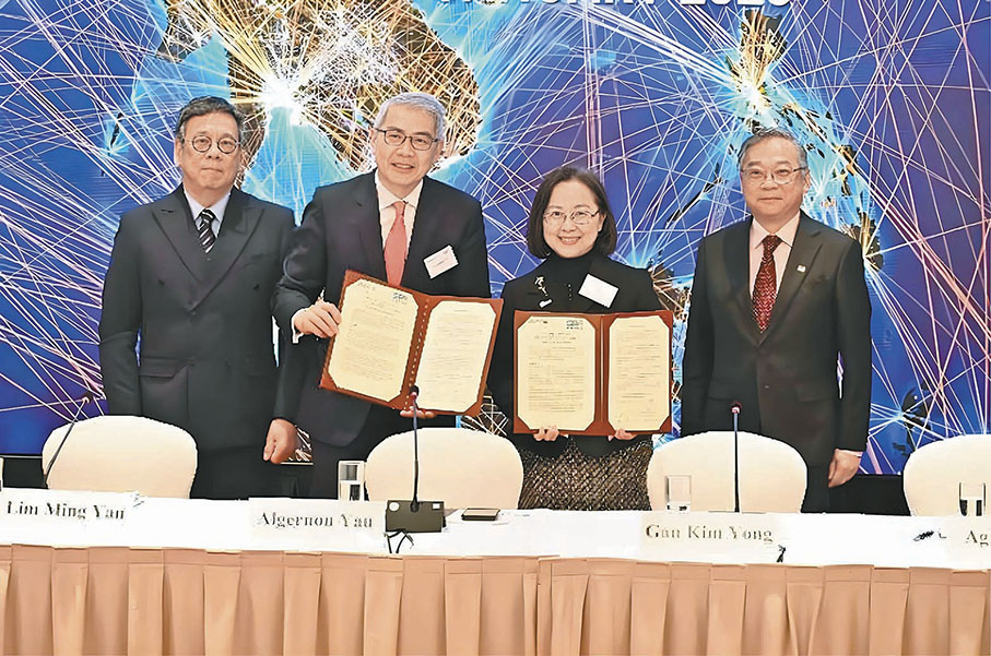 其間,新加坡工商聯合總會與香港總商會簽署合作諒解備忘錄(MoU),同意透過定期溝通及資訊交流,保持緊密合作,互惠互助,共拓兩地商機。雙方均承諾會舉行推廣活動,分享市場及投資見解,並透過互訪及支援會員活動,加強合作,協助對方應對共同挑戰。