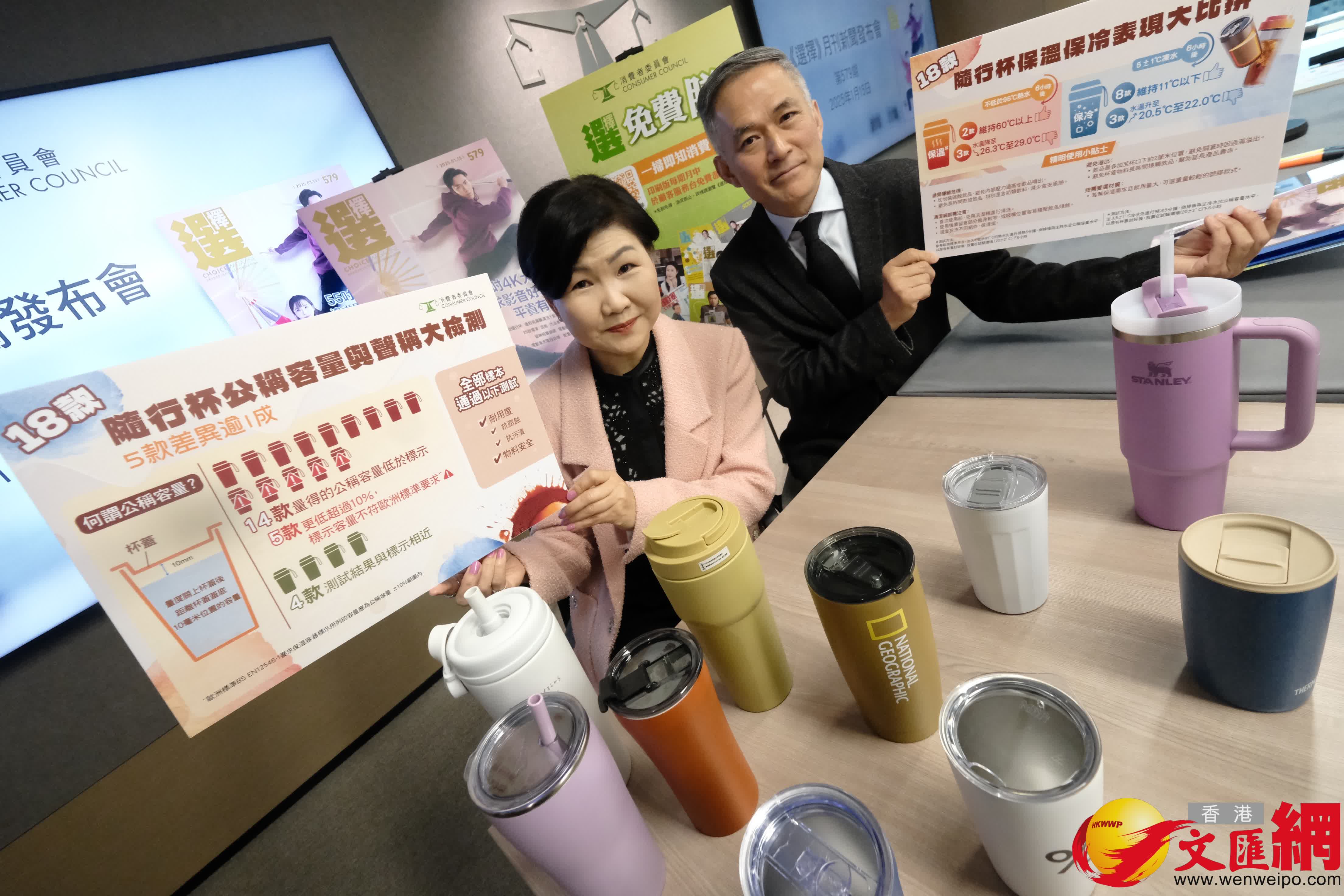 消委會今日(15日)發布新一份選擇月刊,其中一項為測試18款隨行杯樣本。測試發現,5款樣品的公稱容量低於標示逾一成,未能符合歐洲相關標準標示要求。測試亦發現,曾掀起搶購熱潮的美國品牌STANLEY保溫保冷效能良好,但存在防漏問題,且杯身較高,設計為上闊下窄,容易翻側,若注入熱飲後打翻,或有燙傷風險。