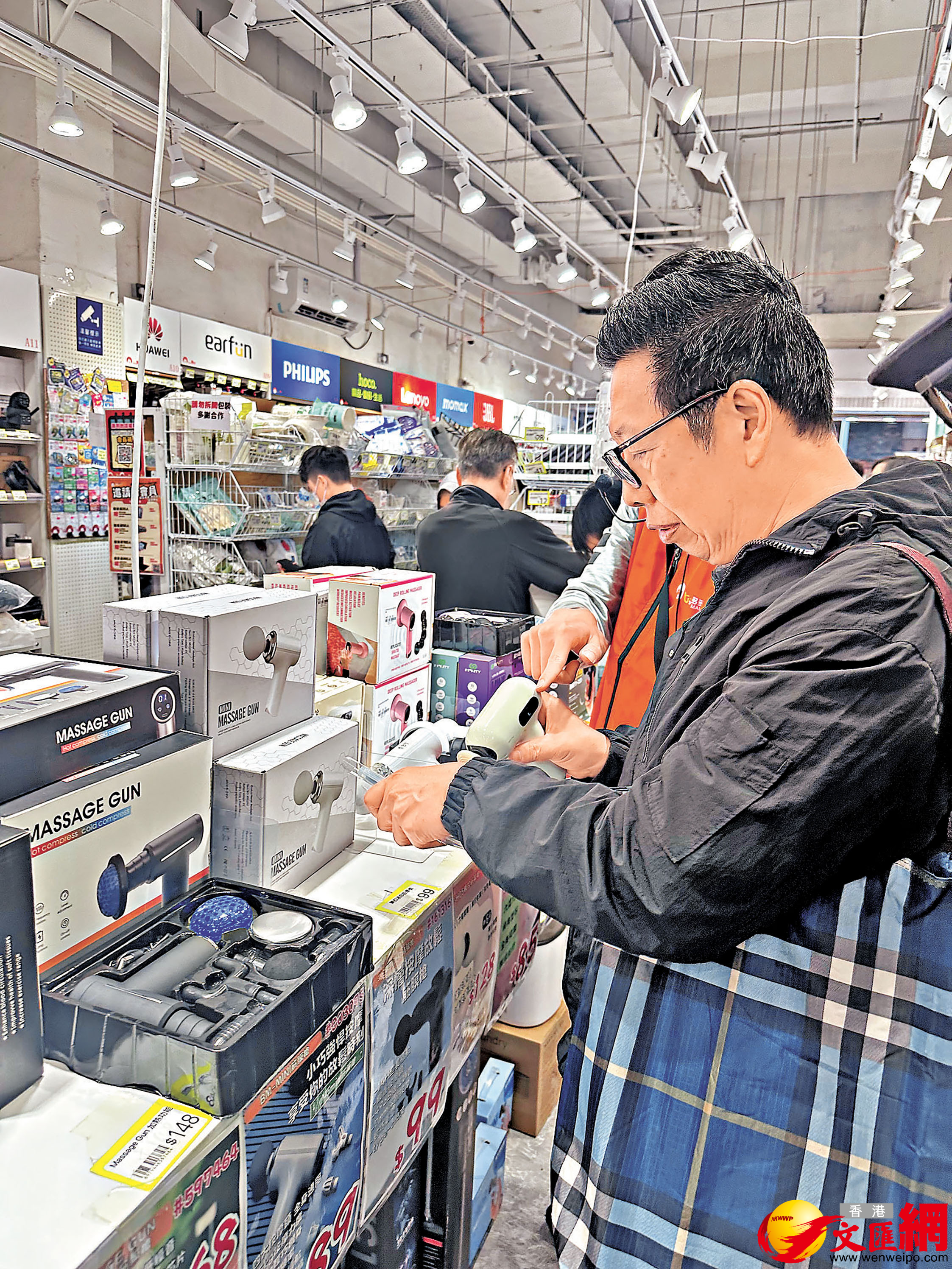 主打價廉的生活用品、家居用品、小型電器、食品等等的淘多多,開業2年多已有10間分店,單聽店名容易令人聯想到是兩個網上購物平台淘寶加拼多多的合體版,但實際上並不是,它的貨源來自不同地方。淘多多最新開張的北角店,位於人來人往的英皇道,店旁邊是同樣賣平價生活用品等雜貨的特賣場,但淘多多有個橙色大大招牌,好易認。小編在平日上班時間踩場,仍見人頭湧湧,大班街坊興奮掃貨,收銀處人龍極長。現場所見,有客人試用按摩槍,店員都非常主動提供幫助,特賣場來說,服務算好好。