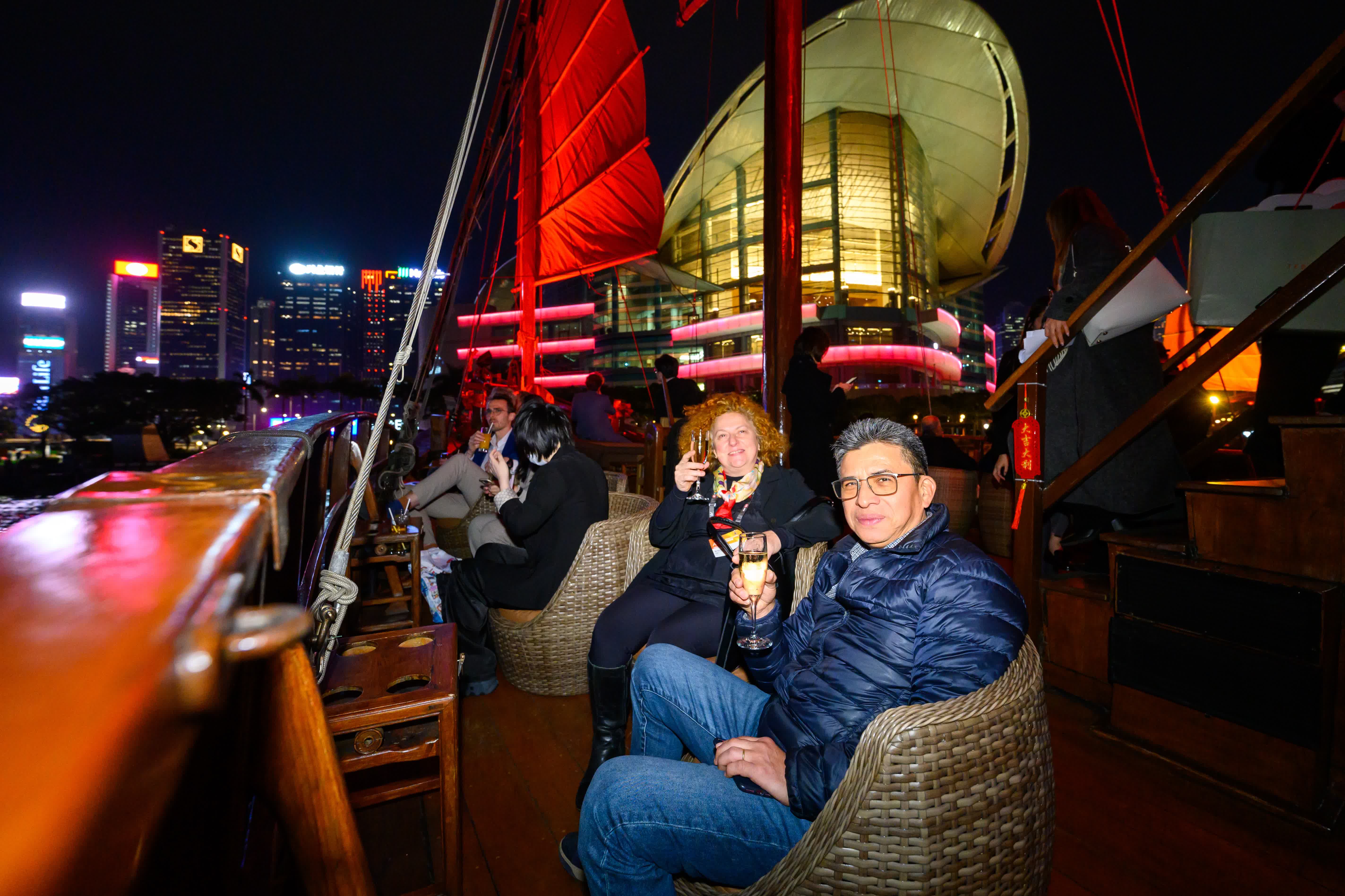 他們在本周二晚海陸夜遊香港。約50名嘉賓乘坐傳統中式帆船張保仔號,一邊泛舟維港,一邊碰杯暢飲。首次體驗維港海上遊的 Marc Baghadjian 指,平時閉門專注談生意,讚嘆優美的夜景映襯下香港的活力,就像看到這座城市美麗的夢想。他形容香港融匯中外的獨特性,匯聚大量來自不同地方的金融和商業人士,讓他今次訪港亦能擴闊自己的朋友圈。他亦希望將業務拓展來港,發掘機遇。