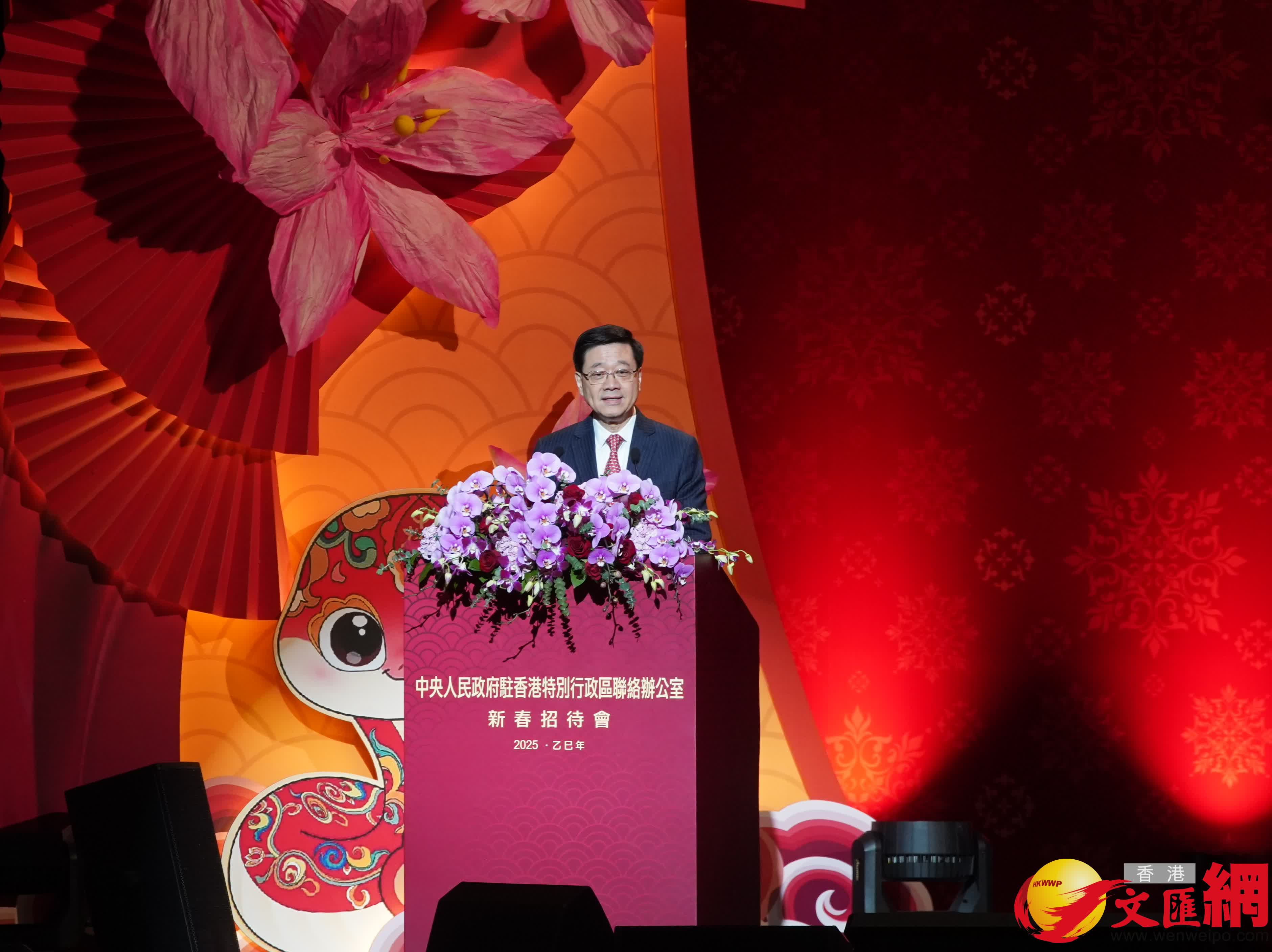 大公文匯全媒體報道:中央政府駐港聯絡辦2025年新春招待會今晚(17日)在香港會議展覽中心三樓大會堂舉行。中央政府駐港聯絡辦主任鄭雁雄、香港特區行政長官李家超及香港各界嘉賓出席新春招待會。行政長官李家超致辭表示,2024年是新中國成立75周年,香港在2024龍年也取得一系列令人鼓舞的成績。