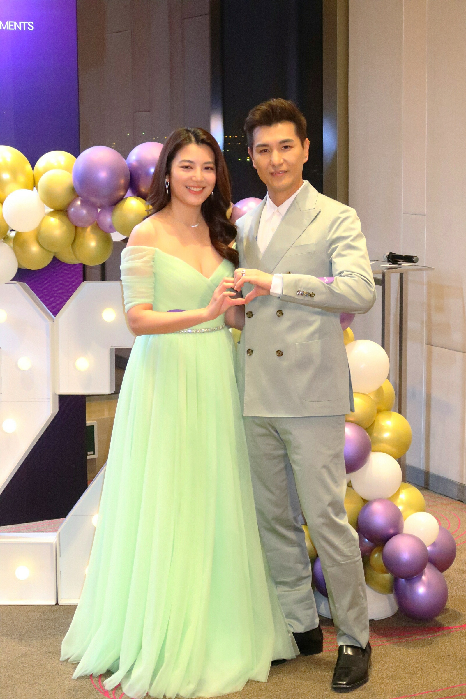 香港文匯報訊(記者 梁靜儀)陳展鵬與老婆單文柔昨晚(16日)以夫妻檔出席醫美集團晚宴暨代言人續約儀式,大會又安排神秘嘉賓張慧儀送上生日蛋糕,為展鵬補祝48歲生日。