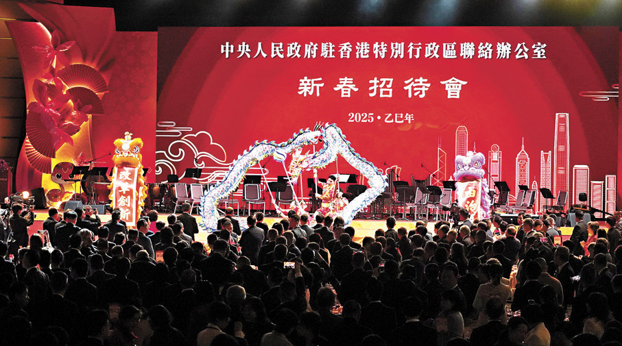 香港文匯報訊(記者 黃子晉、康敬、蔡學怡)即將到來的新春佳節,是聯合國教科文組織將春節列入人類非物質文化遺產代表作名錄後的第一個春節。昨晚舉行的中央政府駐港聯絡辦2025年新春招待會上安排了頗具中國傳統文化特色的舞龍舞獅、中樂、琵琶和粵劇,以及合唱愛國主義教育歌曲等表演,這些既彰顯中國傳統文化風采,又充滿愛國主義情懷的節目,獲得陣陣掌聲與喝彩聲。