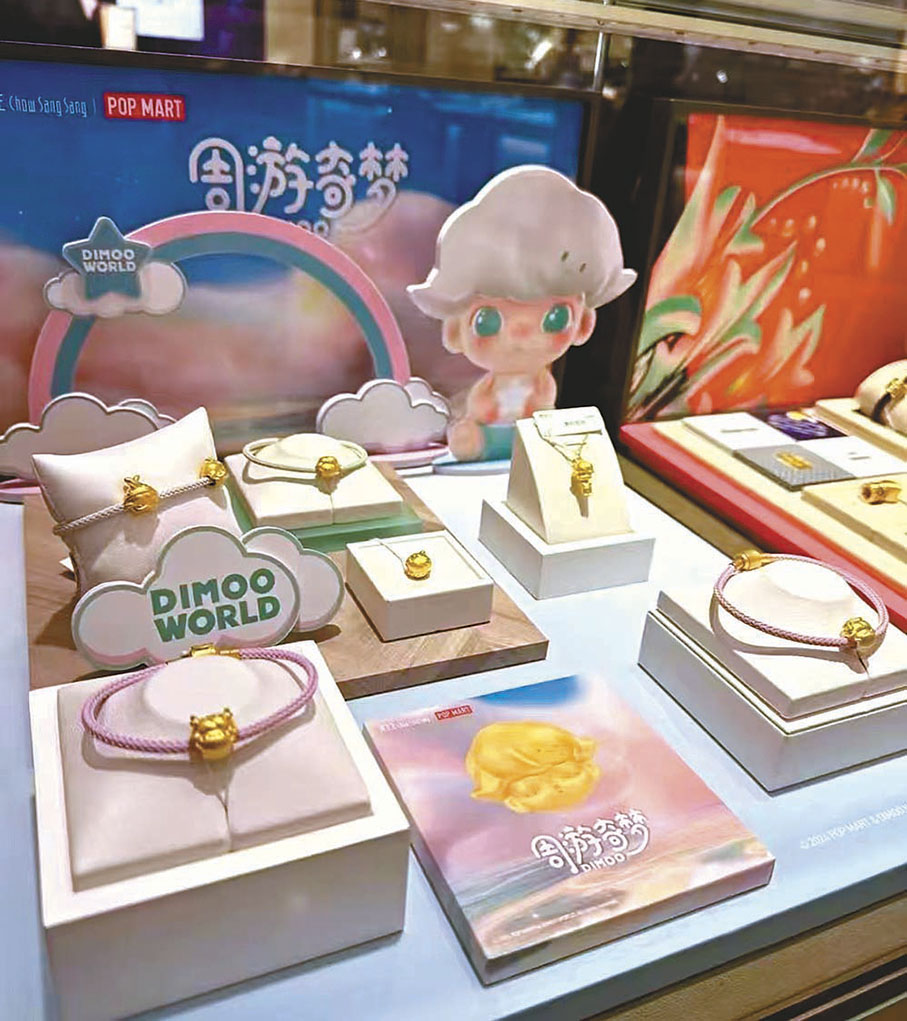 去年12月,知名珠寶品牌周生生再次攜手潮玩領軍品牌泡泡瑪特的經典IP之一DIMOO聯名推出了幾款金飾,同時還結合飾品的外觀設計給每一種樣式取了帶有美好寓意的名字。如「生命力」款象徵着生命頑強的新生,「長相守」款寓意有情人在勇敢中擁抱愛情,甜蜜夢境成真。此前,周生生已與三麗鷗、Hello Kitty等卡通形象IP,以及魔法少女小櫻、海賊王、哈利波特等經典作品IP推出過聯名款金飾,均受到了市場的熱烈反響。