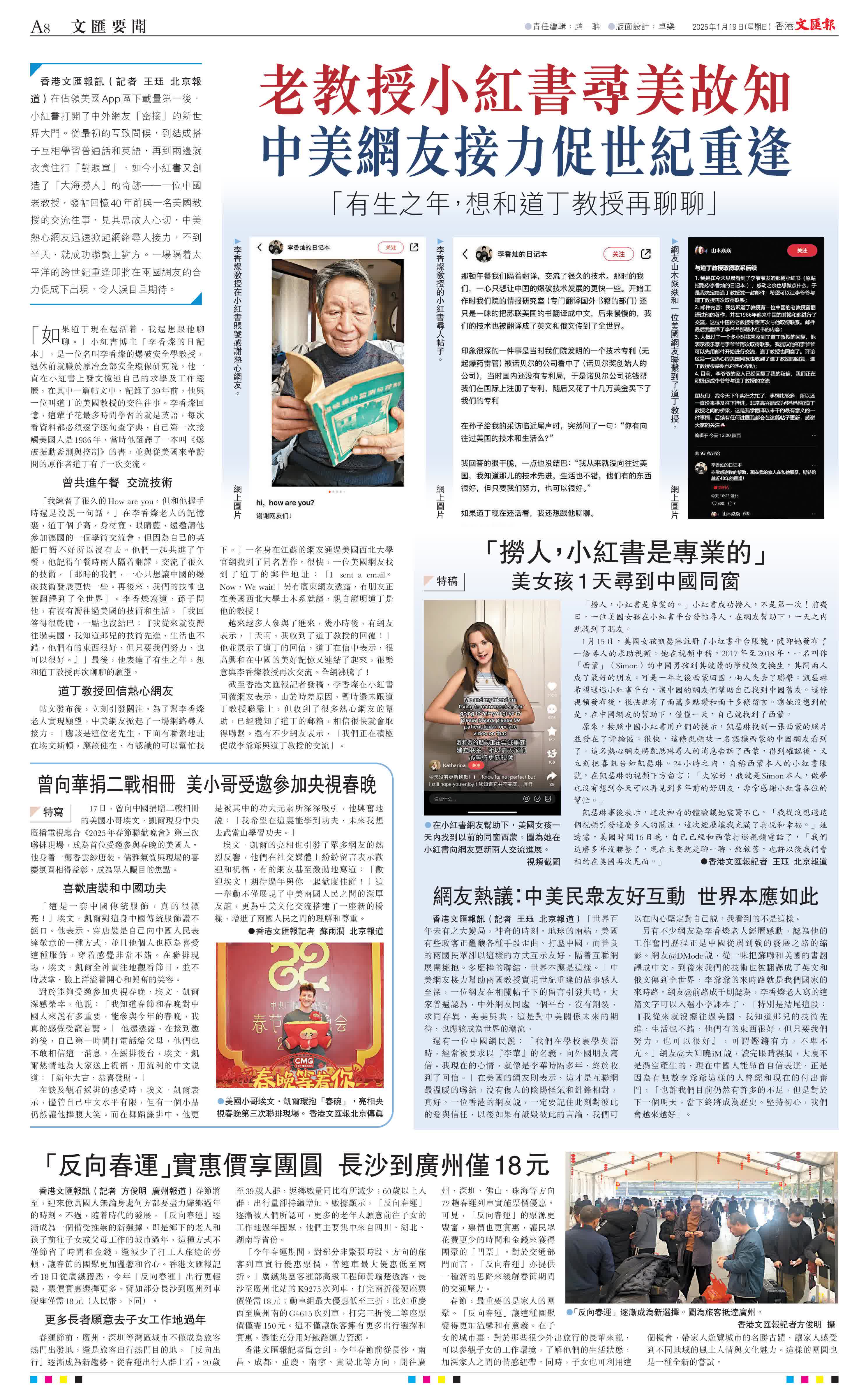 (香港文匯報記者 王珏 北京報道)「撈人,小紅書是專業的。」小紅書成功撈人,不是第一次!前幾日,一位美國女孩在小紅書平台發帖尋人,在網友幫助下,一天之內就找到了朋友。