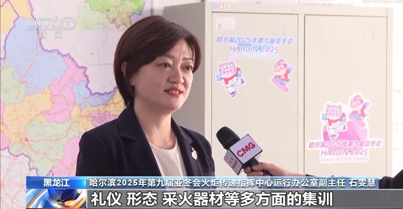 哈爾濱2025年第九屆亞冬會火炬傳遞指揮中心運行辦公室副主任石雯慧:我們對採火使者進行了禮儀、形態、採火器材等多方面的集訓,同時也進行了亞冬會相關知識的培訓,讓奧林匹克精神能夠內化於心、外化於行。