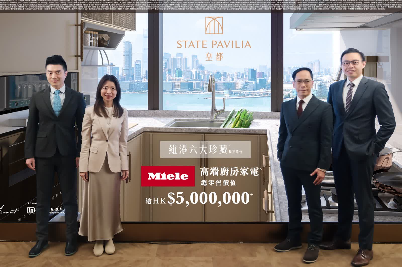 何家欣指出,項目維港珍藏大宅買家國際化,包括本地客、新加坡客及內地客,當中包括2組大手客。是次項目維港珍藏大宅更與德國Miele廚房家電品牌合作,為24伙大宅配備總零售投資額高達逾500萬元的家電,包括煮食爐、電磁爐、抽油煙機、蒸焗爐或焗爐、蒸爐,洗碗碟機。