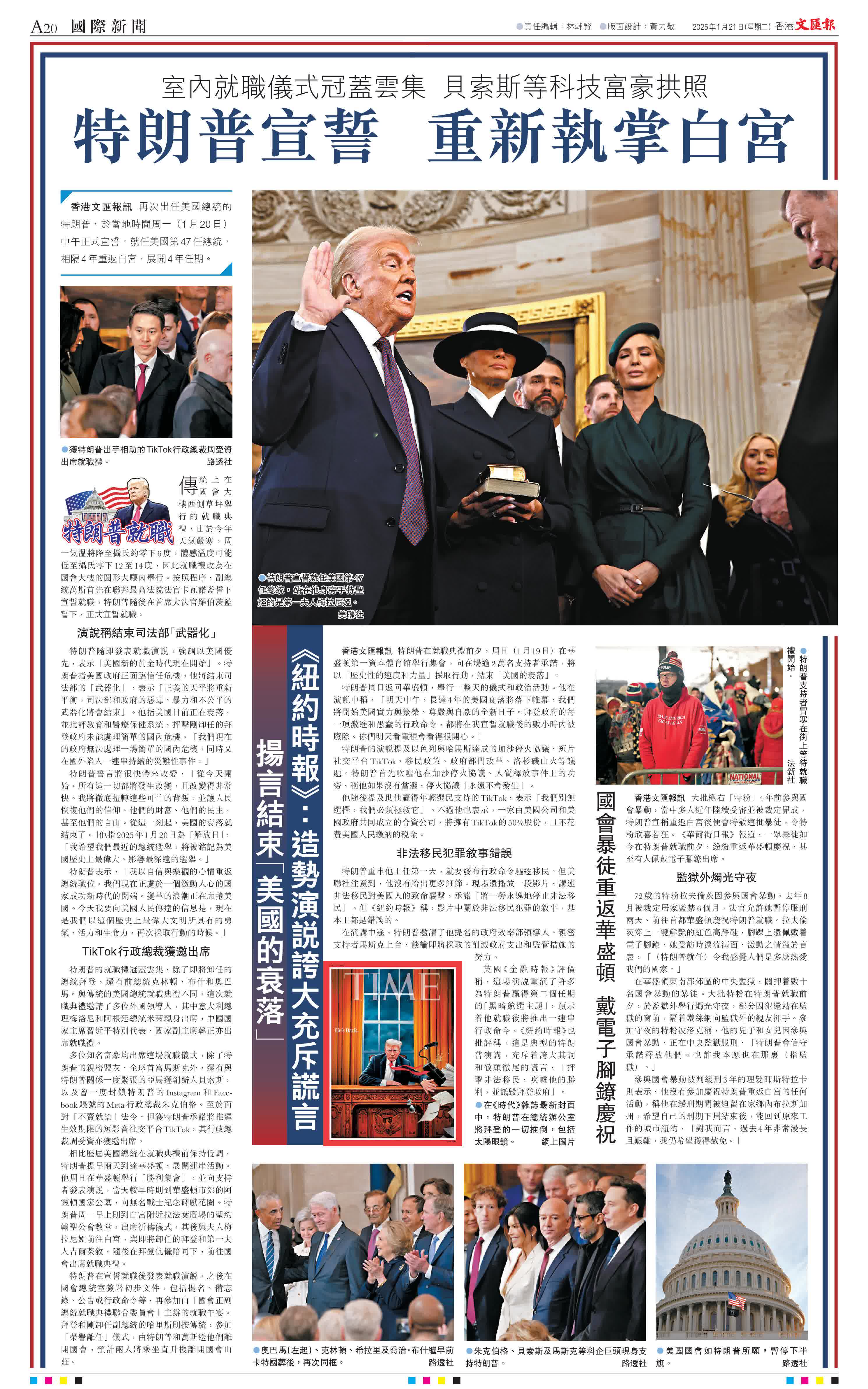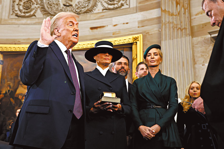 香港文匯報訊 再次出任美國總統的特朗普,於當地時間周一(1月20日)中午正式宣誓,就任美國第47任總統,相隔4年重返白宮,展開4年任期。