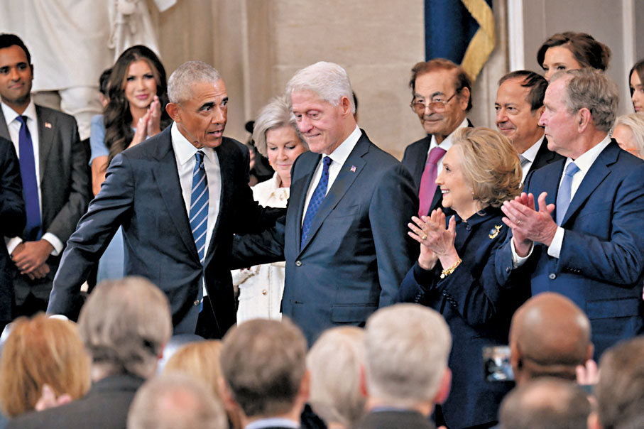 特朗普的就職禮冠蓋雲集,除了即將卸任的總統拜登,還有前總統克林頓、布什和奧巴馬。與傳統的美國總統就職典禮不同,這次就職典禮邀請了多位外國領導人,其中意大利總理梅洛尼和阿根廷總統米萊親身出席,中國國家主席習近平特別代表、國家副主席韓正亦出席就職禮。