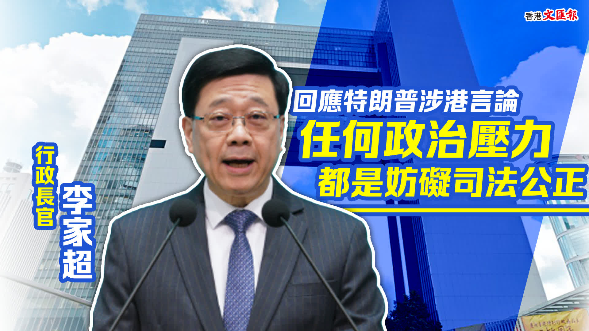 李家超強調,香港的司法制度固若金湯,本港有強大穩固的法律制度及法律基礎,任何在法庭審訊的案件都依據法律、依據審判原則,由法官公平公正地審訊,任何政治壓力都是妨礙司法公正。