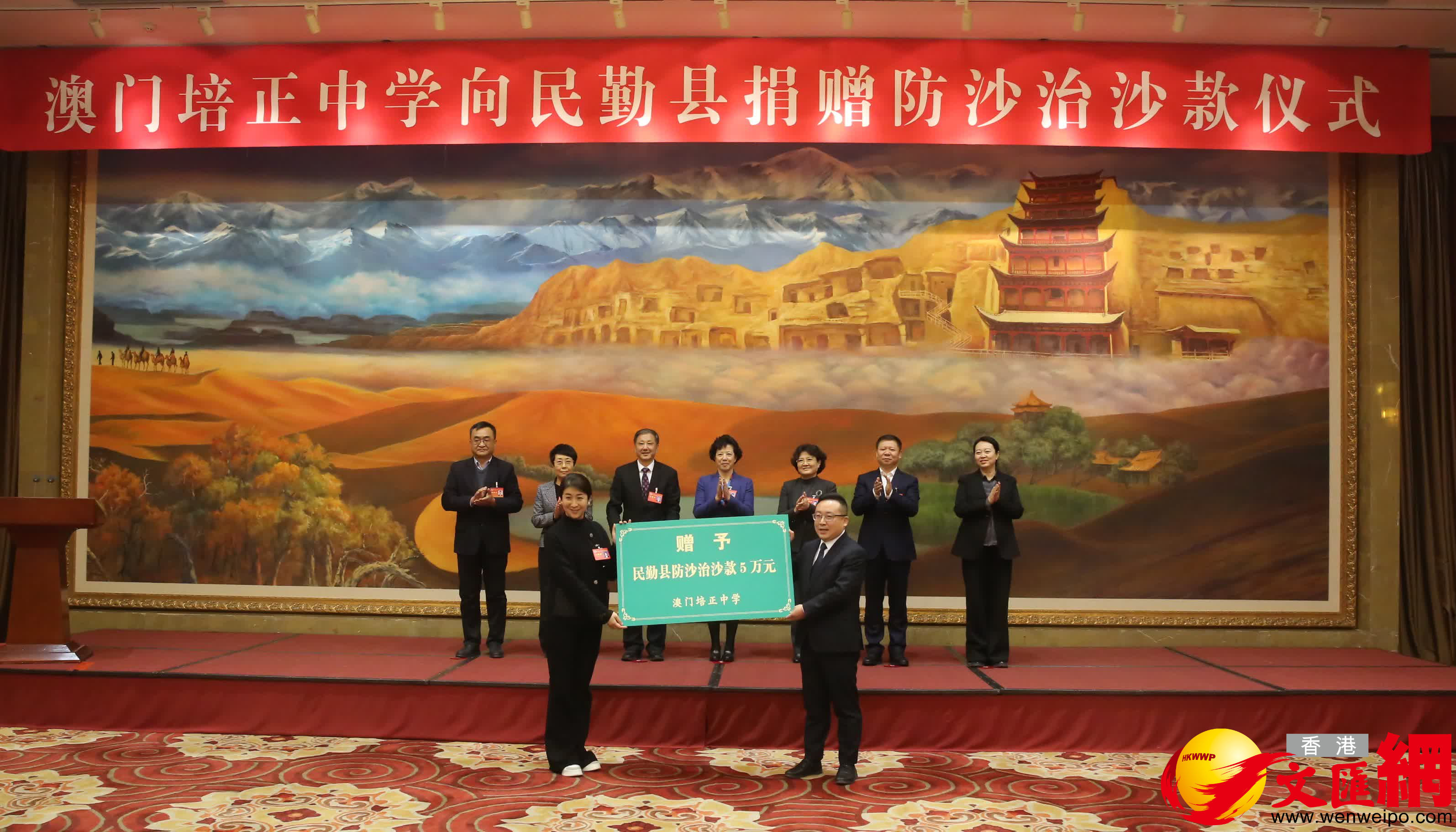 (香港文匯網記者 郭濤 甘肅報道)1月20日,正在甘肅蘭州參加政協甘肅省第十三屆委員會第三次會議的甘肅省政協住澳門委員何萍萍代表澳門培正中學向甘肅民勤捐助5萬元用於當地防沙治沙。