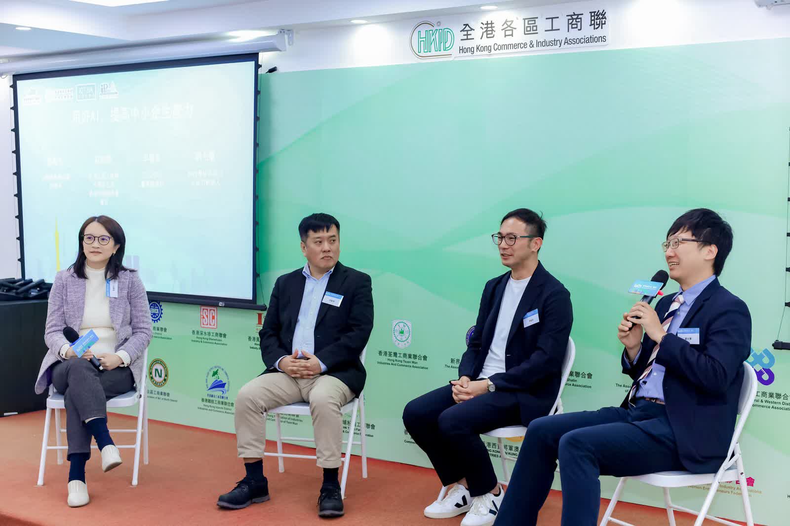 在圓桌論壇環節,互聯網專業協會副會長黃麗芳女士圍繞「用好AI,提高中小企生產力」,與全港工商聯大灣區主席及香港物聯網商會會長莊毅堅先生,三公控股董事總經理李鑒泉先生,科啟學院有限公司共同創辦人劉光曆先生互動,並就中小企在業務流程上如何用好AI增加營運效率、中小企應留意及值得投資AI技術作討論。