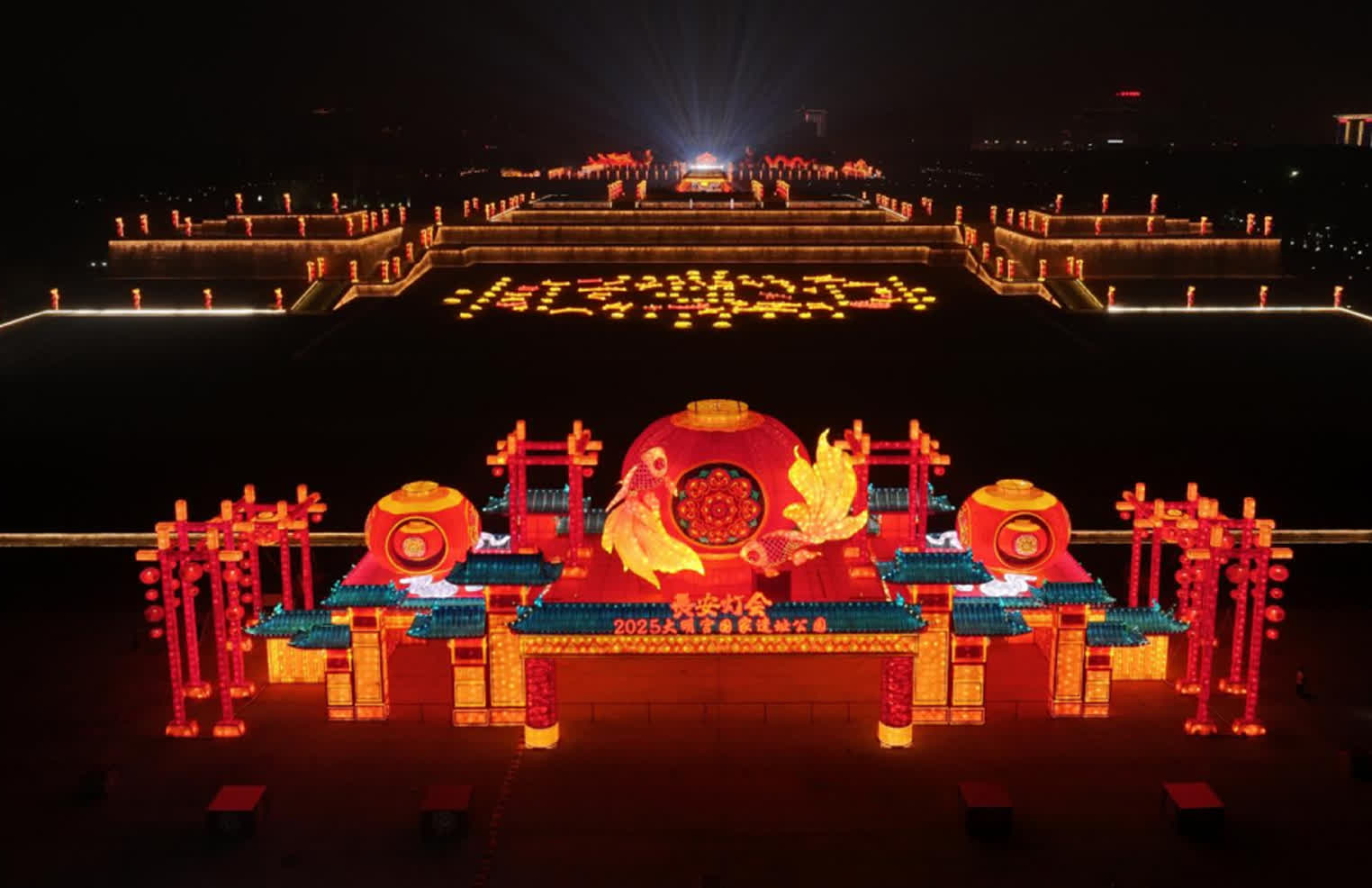 2025乙巳新春「長安燈會」主題為「乙巳中國年,燈映長安春」,從1月22日(農曆腊月二十三)至3月16日(農曆二月十七),為期54天。其中,大明宮國家遺址公園燈會推出盛唐文化融合國風主題的各類精美主題燈組,以及煙火琳琅的國潮集市和光影交織的沉浸式演藝,為市民遊客帶來一場絢麗奪目的視覺盛宴。