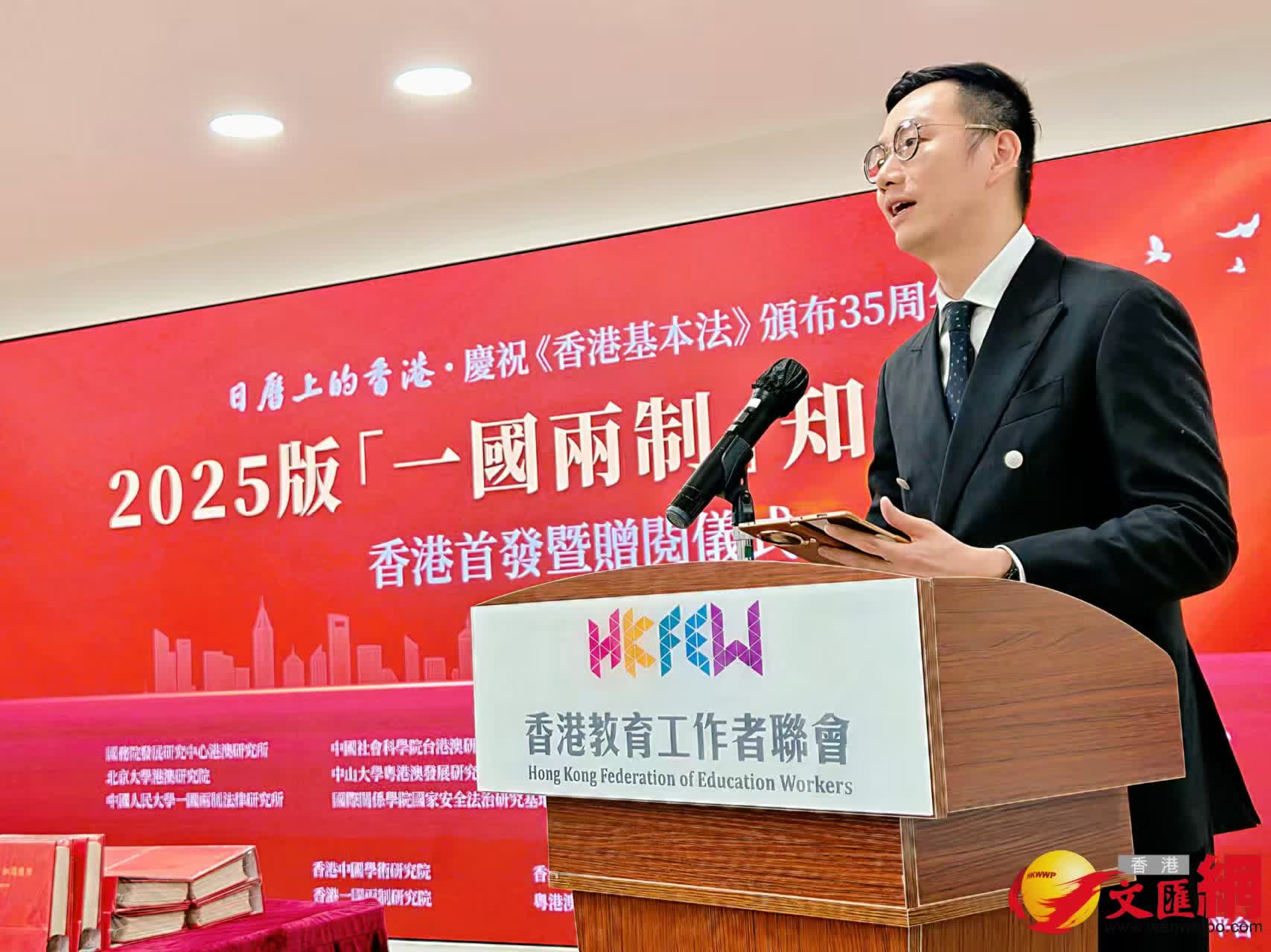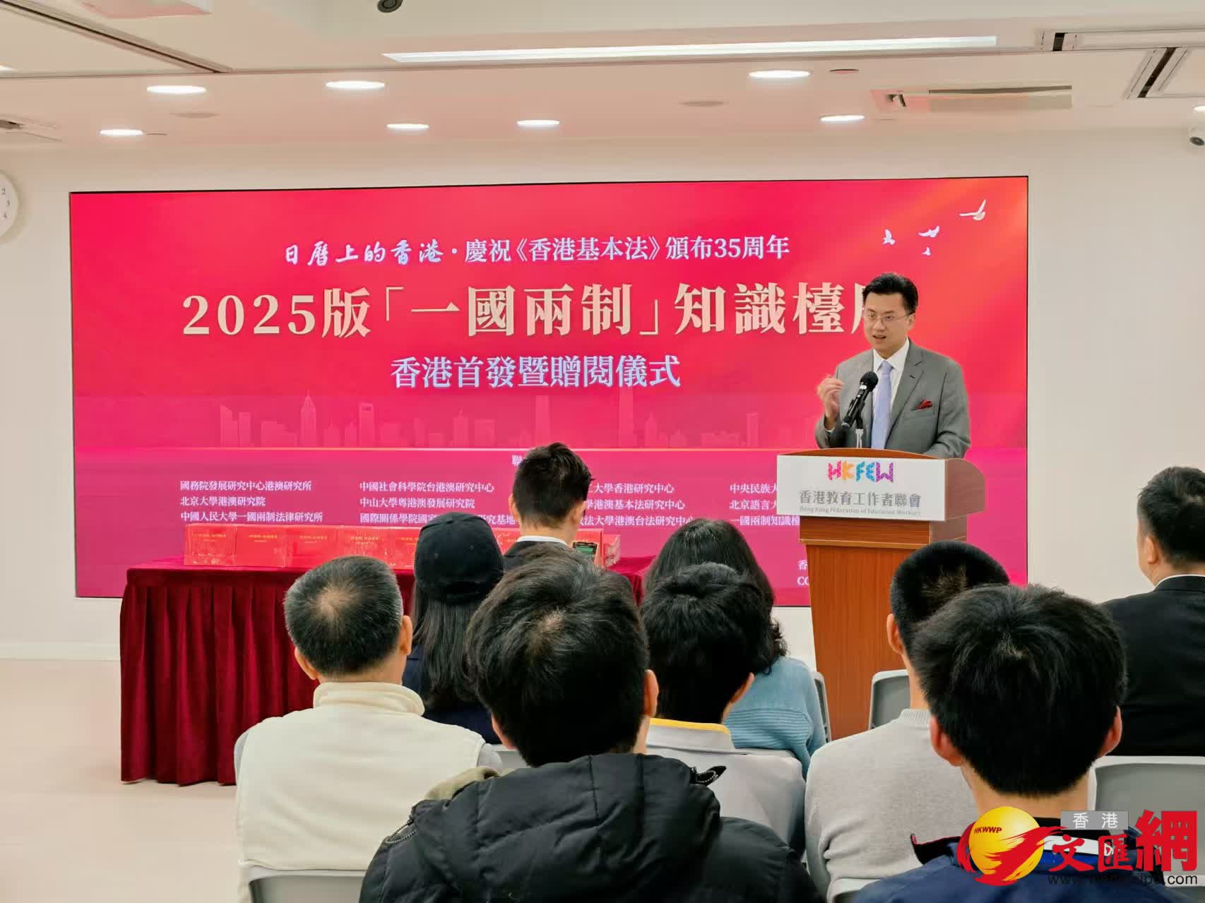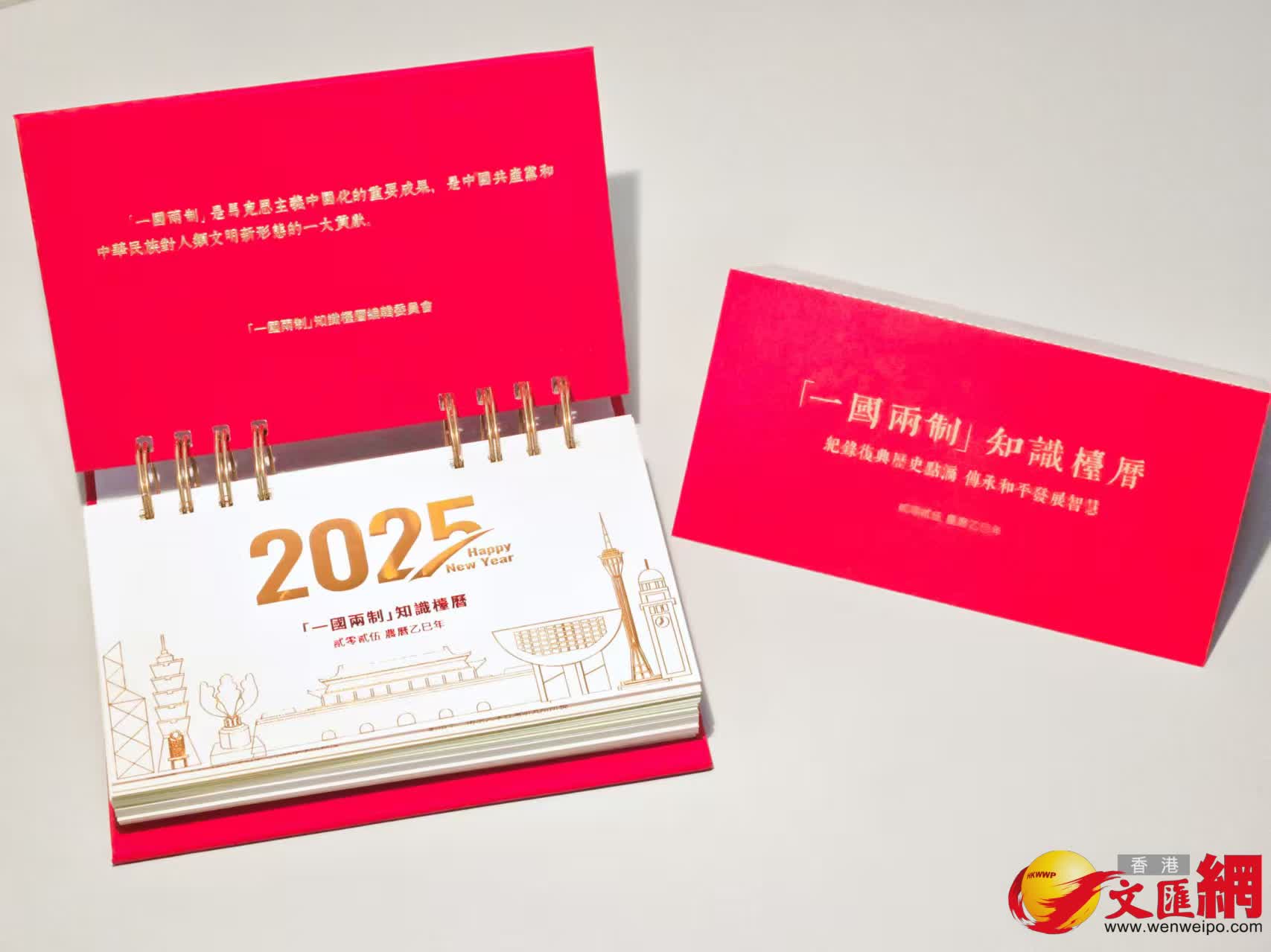 香港文匯報訊(記者 黃子晉)「日曆上的香港·慶祝香港基本法頒布35周年——2025版『一國兩制』知識檯曆香港首發暨贈閱儀式」今日(23日)在香港教育工作者聯會教育培訓交流中心舉行。多位「一國兩制」知識檯曆編輯委員會代表表示,知識檯曆將會透過教育界、商會網絡廣泛派贈,期望讓社會各界、年輕人更好了解「一國兩制」的理念和成就,共同為維護「一國兩制」,推動祖國和平統一大業和中華民族偉大復興貢獻力量。