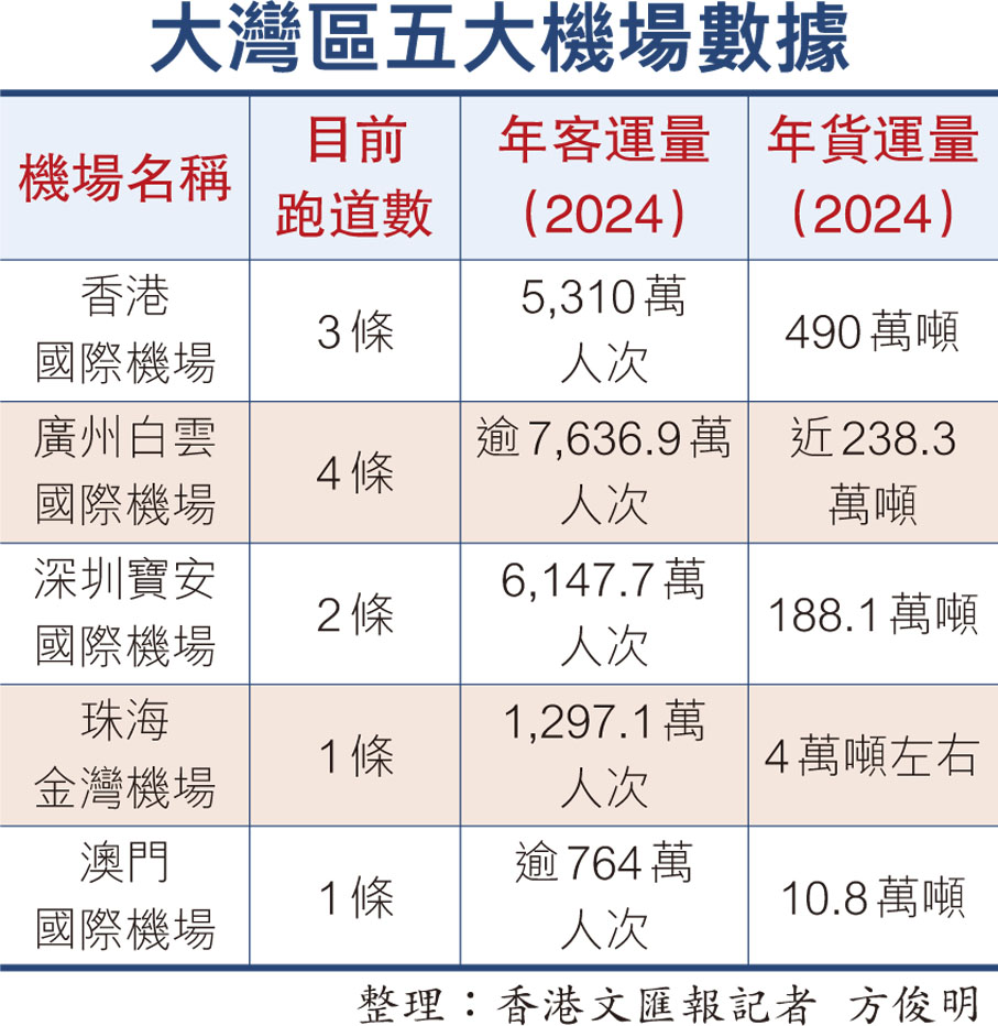 「白雲機場與香港機場作為粵港澳大灣區的國際航空樞紐,合作空間廣闊,可共同推動大灣區的發展。」中山大學港澳珠三角研究中心教授鄭天祥表示,兩機場可以共享航空網絡、客戶資源以及物流設施等,實現優勢互補。譬如,白雲機場可以利用其龐大的國內航線網絡,與香港機場豐富的國際航線相結合,為旅客提供更加便捷的中轉服務;而兩機場的物流設施亦可實現共享,提高物流效率,降低運營成本。