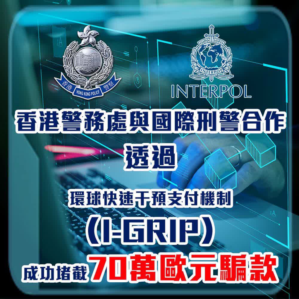 騙案受害人為葡萄牙一間公司職員,早前因收到假冒行政總裁的虛假指示及錄音,誤信公司需要進行收購行動,將約70萬歐元轉賬到一個香港的銀行戶口,其後揭發騙案報警。國際刑警組織立即透過環球快速干預支付機制(I-GRIP)通知香港警務處反詐騙協調中心;反詐騙協調中心人員即時進行情報分析下,成功攔截全部騙款;這次成功行動,突顯警方在打擊騙案和攔截騙款的主動及積極態度。