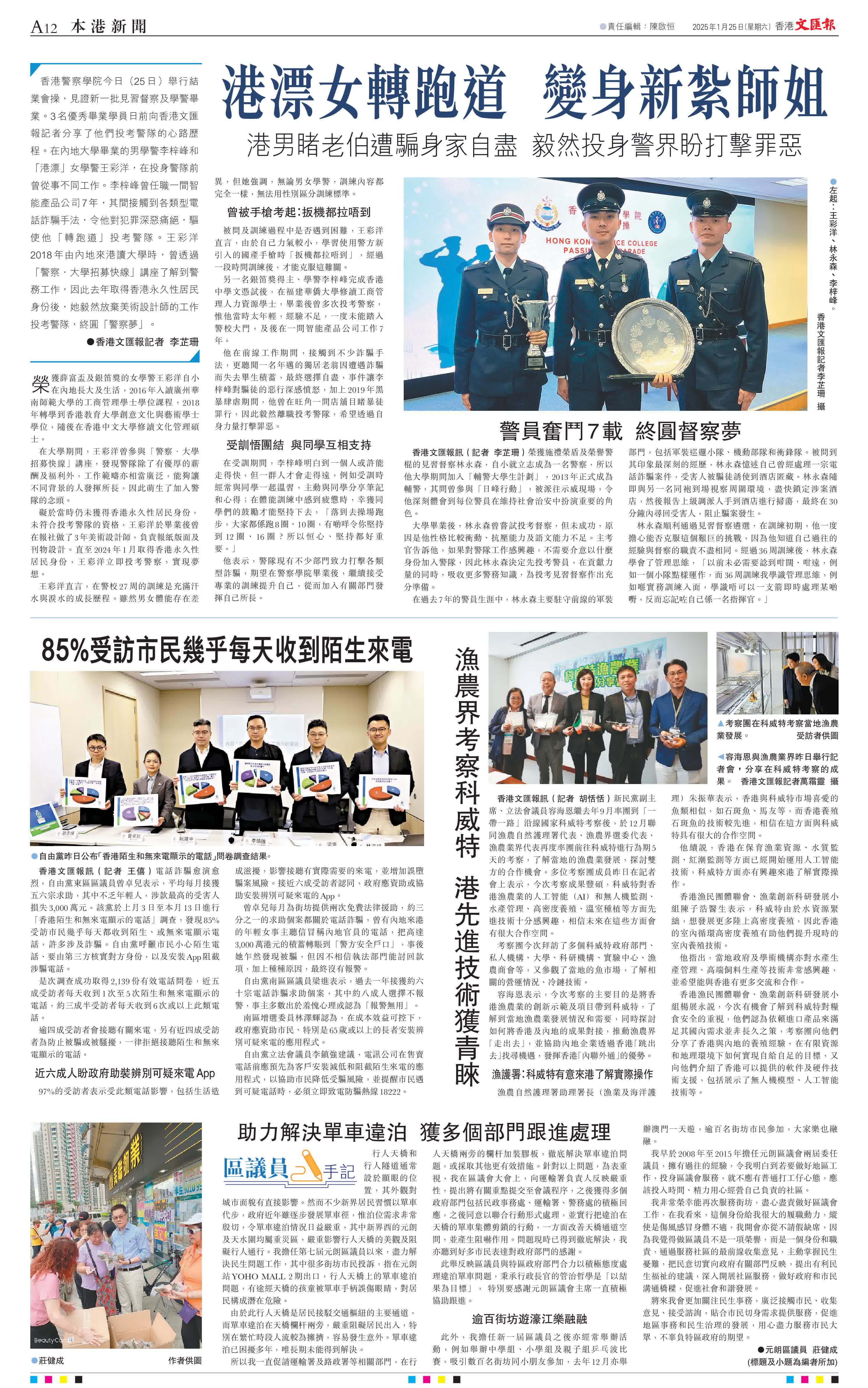 (香港文匯報記者 李芷珊)香港警察學院今日(25日)舉行結業會操,見證新一批見習督察及學警畢業。3名優秀畢業學員日前向香港文匯報記者分享了他們投考警隊的心路歷程。在內地大學畢業的男學警李梓峰和「港漂」女學警王彩洋,在投身警隊前曾從事不同工作。李梓峰曾任職一間智能產品公司7年,其間接觸到各類型電話詐騙手法,令他對犯罪深惡痛絕,驅使他「轉跑道」投考警隊。王彩洋2018年由內地來港讀大學時,曾透過「警察·大學招募快線」講座了解到警務工作,因此去年取得香港永久性居民身份後,她毅然放棄美術設計師的工作投考警隊,終圓「警察夢」。