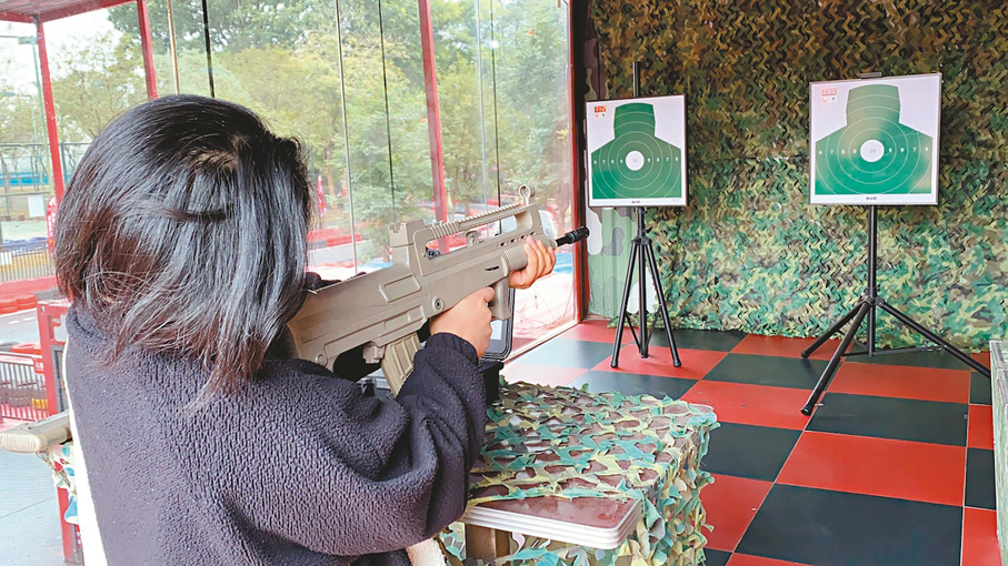 除了卡丁車,「漂卡E族」還提供了互動射擊等娛樂項目。一位正在玩射擊的內地遊客黃小姐表示,槍支設計十分逼真,連射擊時的後坐力都做出來了。「讓我體驗了一把奧運冠軍比賽時的快感。」