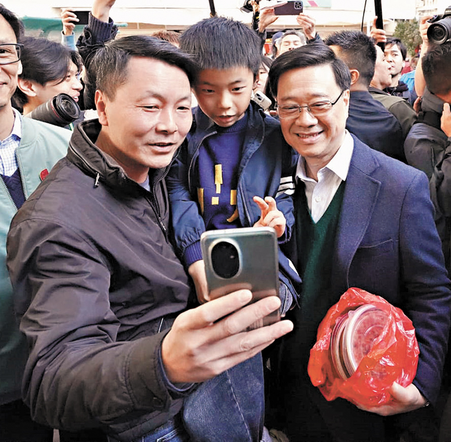 新春佳節將至,香港特區行政長官李家超昨日落區到何文田愛民邨參與十八區歲晚關愛隊家訪活動,向獨居長者拜早年,沿途與區內商戶和居民親切互動,受到大人小朋友熱烈歡迎。李家超其後在社交平台發帖表示,感謝全港452隊關愛隊自成立以來一直展現仁心義行,期望他們繼續努力為民謀福,在社區傳遞關愛。多位愛民邨街坊與李家超互動後接受香港文匯報訪問時均大讚特首親民,並表示政府近年在房屋、醫療、地區治理等多個方面的施政都做得不錯,期望特區政府新一年在李家超帶領下更積極盤活香港整體經濟,努力建設關愛社區。