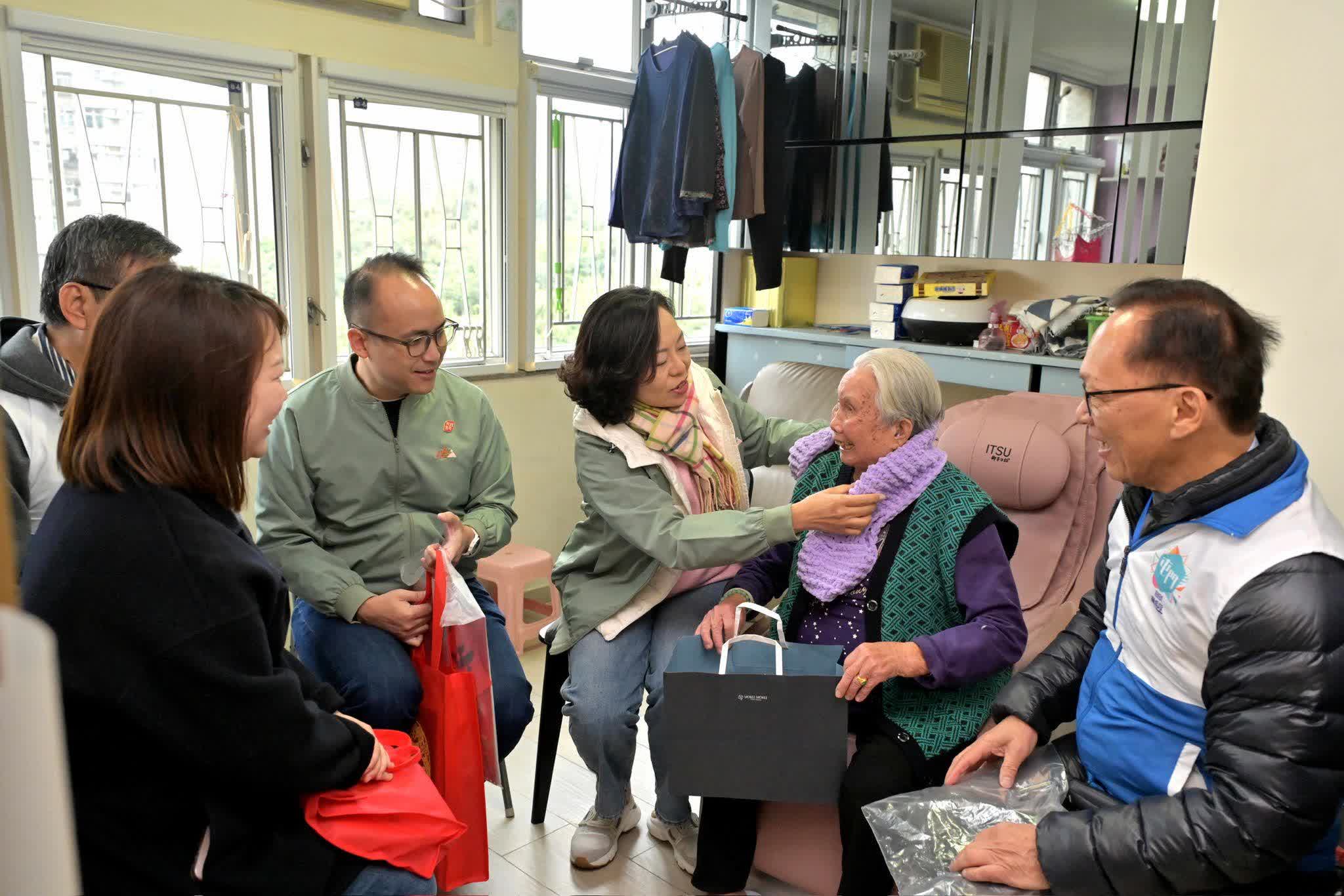 政務司副司長卓永興在油尖旺民政事務專員余健強陪同下,聯同油尖旺區區議員和油尖旺區地區服務及關愛隊伍(關愛隊)代表探訪居於大角咀的獨居長者和新移民家庭,了解他們的生活情況和需要,共享節日歡欣。