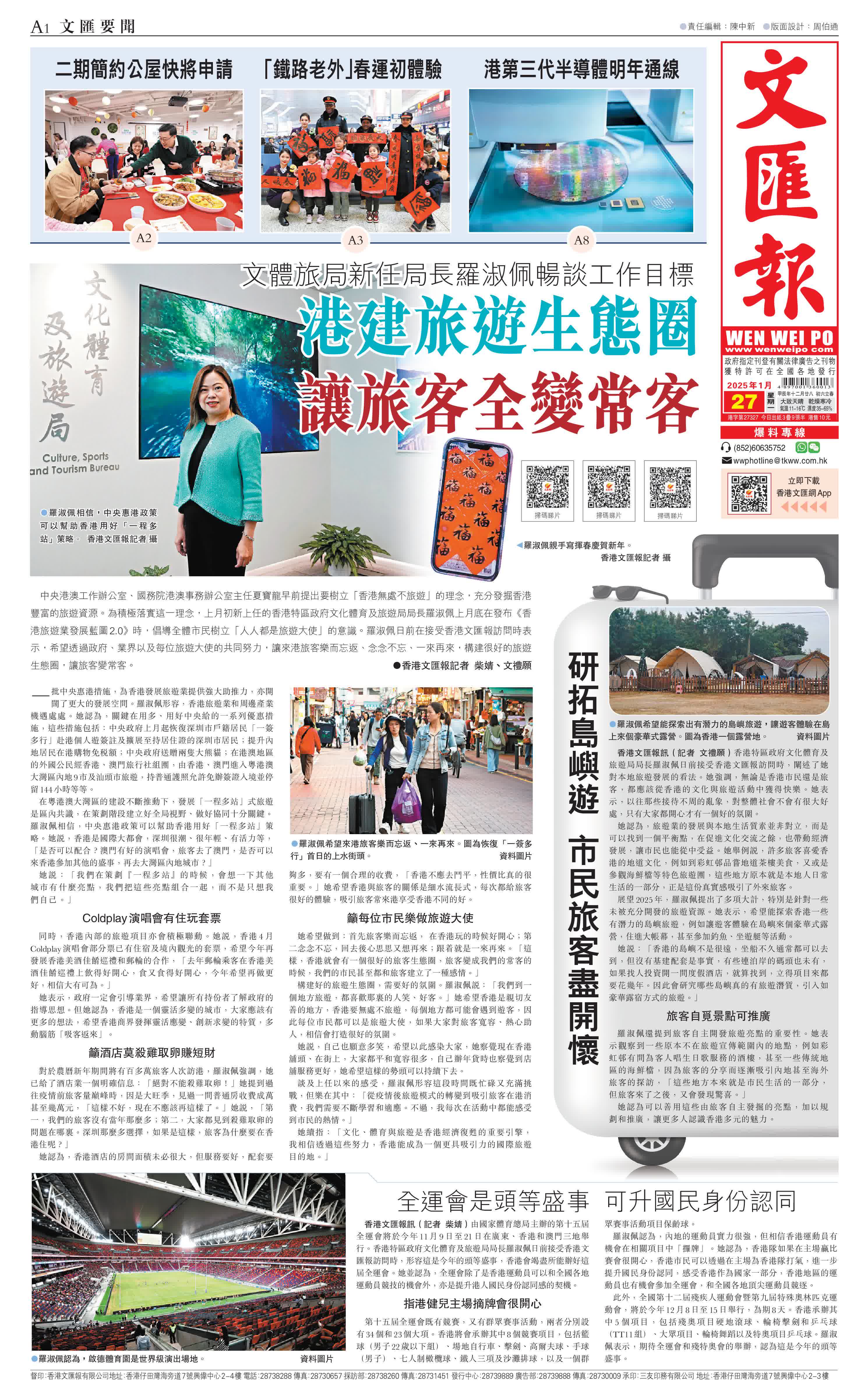 展望2025年,羅淑佩提出了多項大計,特別是針對一些未被充分開發的旅遊資源。她表示,希望能探索香港一些有潛力的島嶼旅遊,例如讓遊客體驗在島嶼來個豪華式露營,住進大帳幕,甚至參加釣魚、坐遊艇等活動。