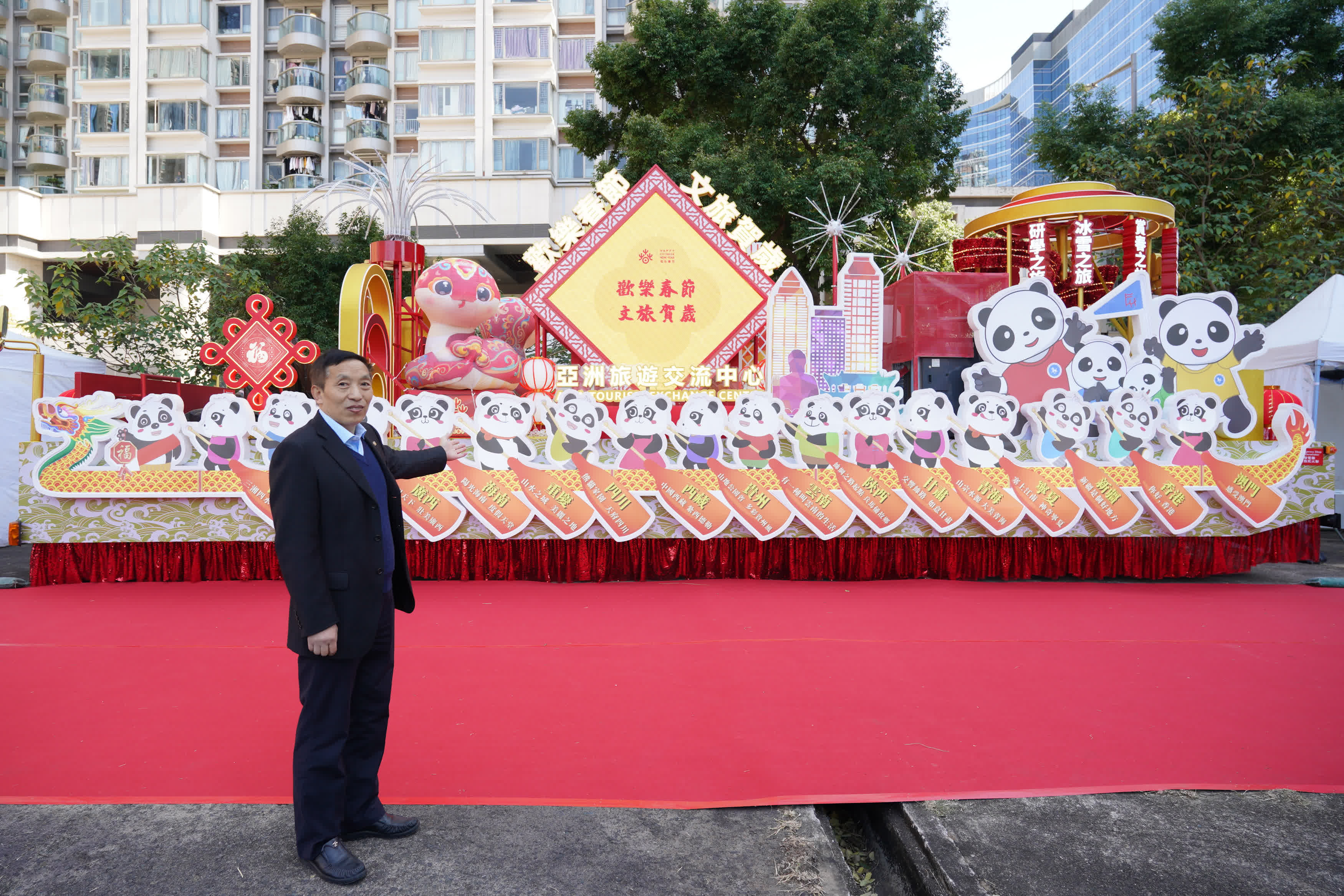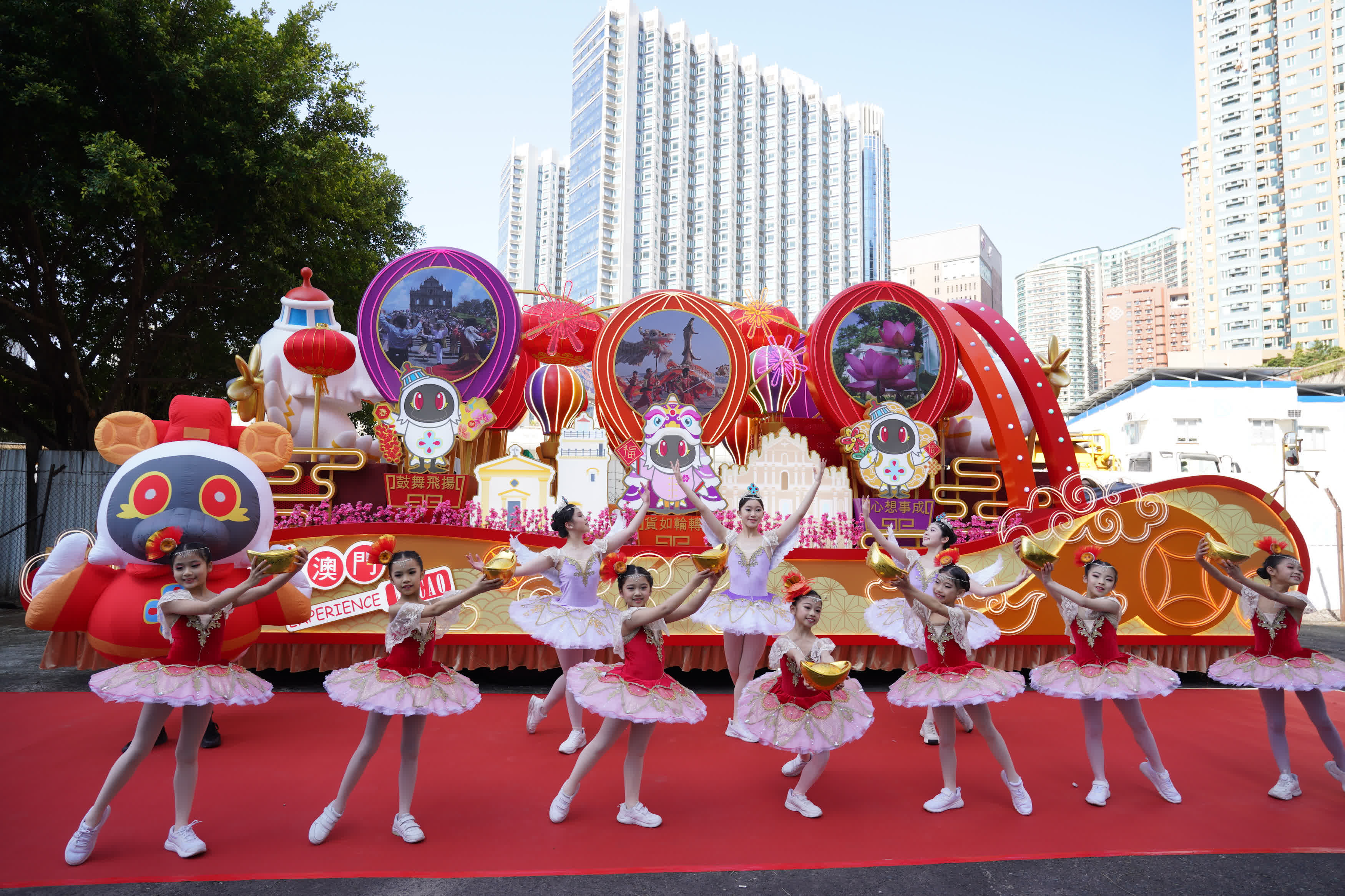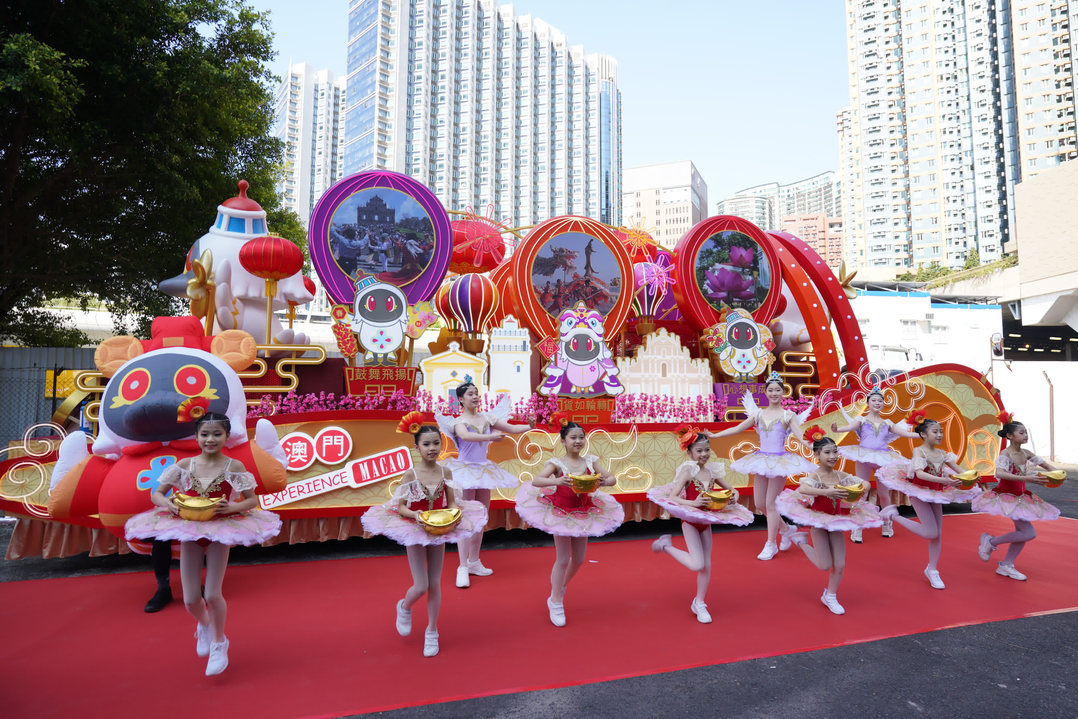 澳門特別行政區政府旅遊局的高級推廣經理張小姐表示,花車上的熱氣球展示了澳門的旅遊和人文特色,包括澳門的地標建築及當地的地道美食,花車上還有澳門旅遊吉祥物「麥麥」飛翔的領航造型,向觀眾拜年送上新春祝福。