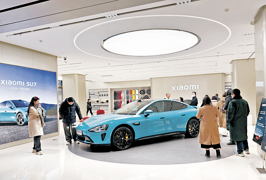 記者獲悉,當前30萬元(人民幣,下同)左右的新能源車最暢銷。在一家小米汽車店,往來體驗購車的顧客一波接一波。工作人員告訴記者,小米汽車介乎21.59萬至29.99萬元之間,訂購量一直穩步上升、供不應求。