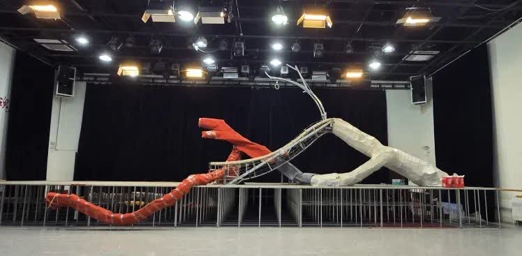 這其中的點睛之筆,是讓觀眾驚艷的「枝頭滑行」,其「玄機」就在於道具樹枝中暗藏的滑梯。為了增加動作的絲滑感,滑梯上要塗潤滑油,同學們帶着舞姿側身、俯身,甚至頭朝下滑下,在一次次摔倒、受傷、流淚中不斷尋找喜鵲滑行的感覺。
