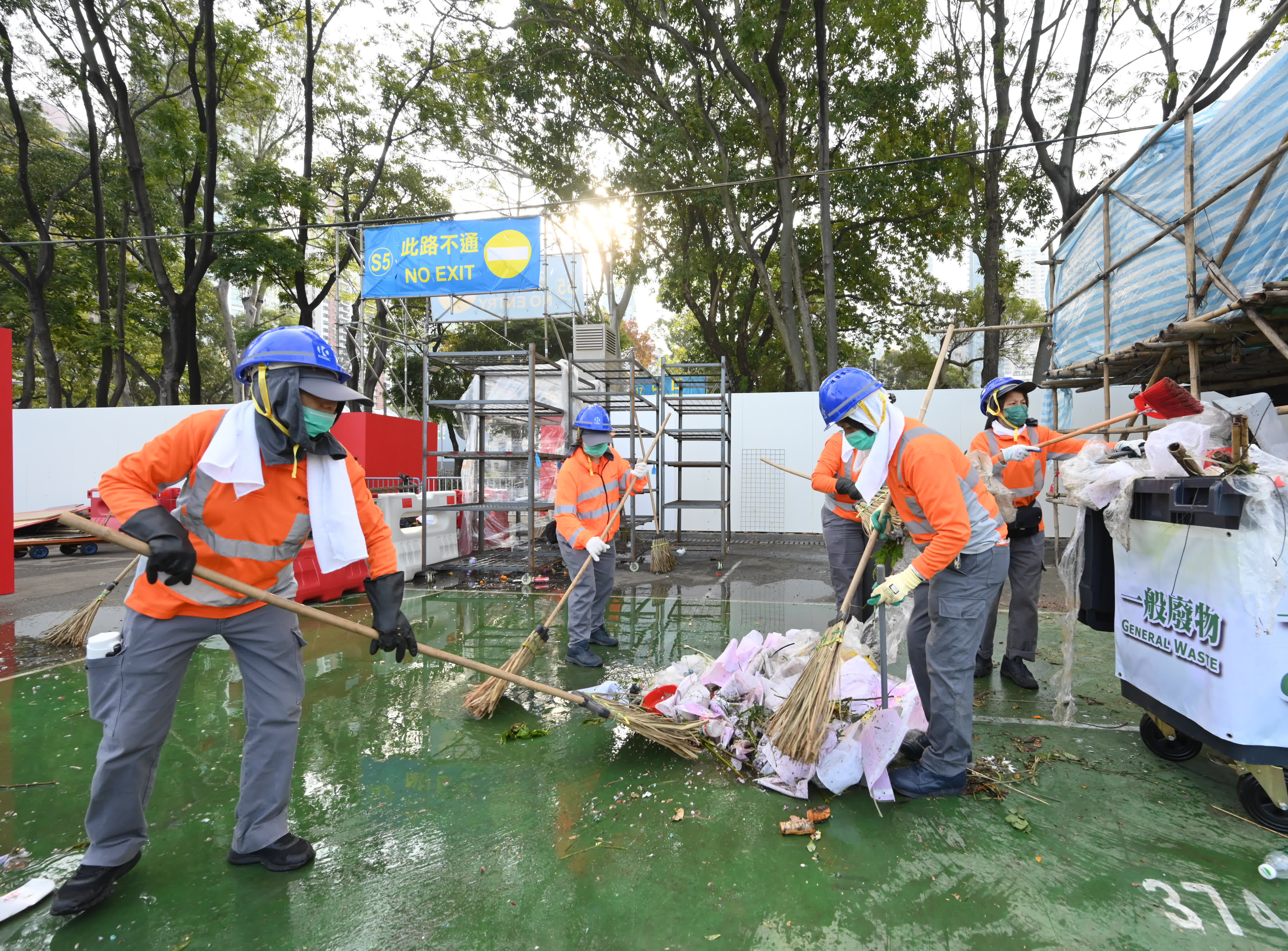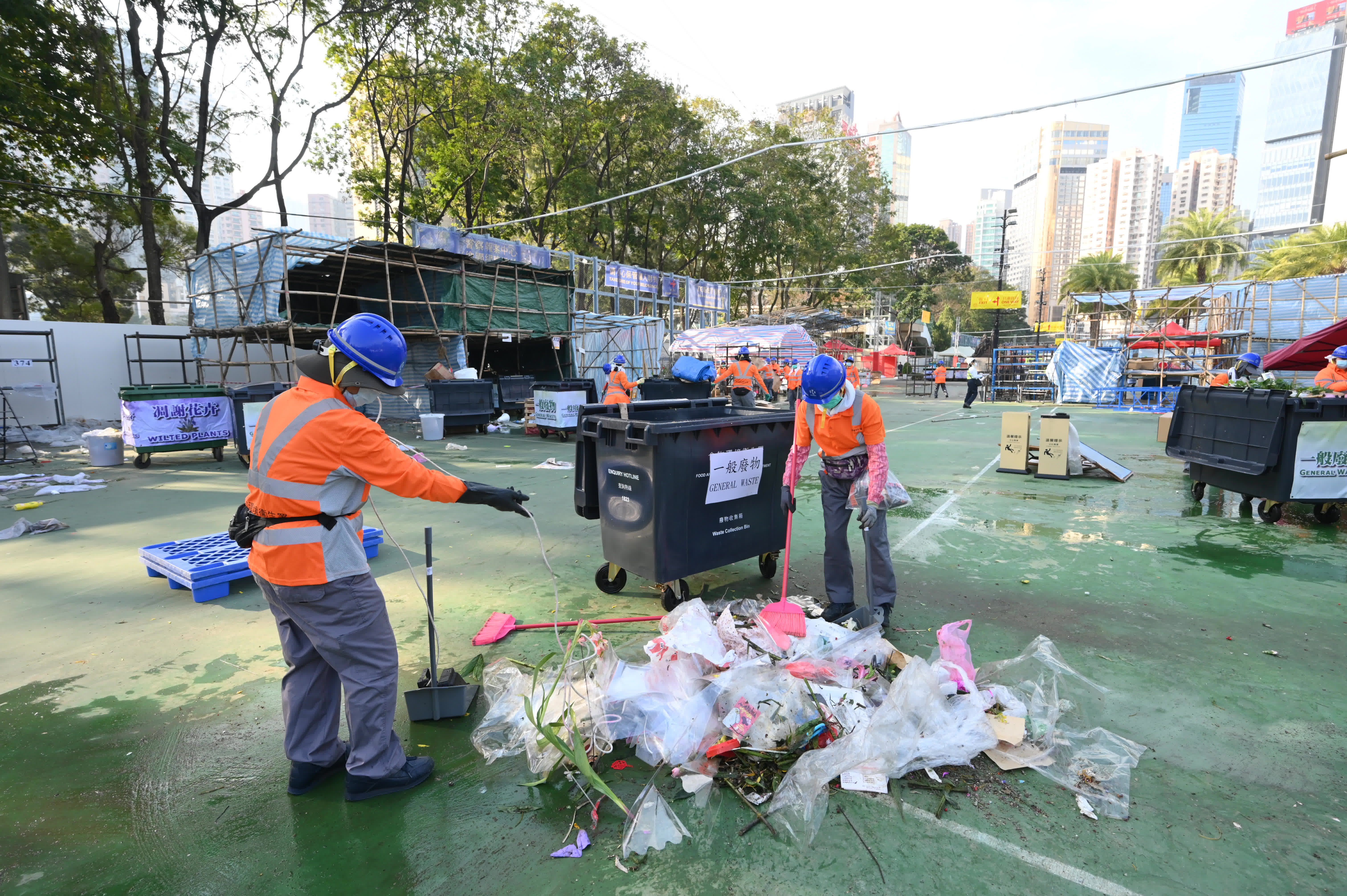 隨着年宵市場圓滿結束,食環署動員約250名員工及調動48架次垃圾收集車和洗街車為維多利亞公園年宵市場進行清理工作,其餘14個年宵市場清理工作則由外判潔淨服務承辦商負責。所有年宵市場的清理工作約於下午6時完成,經徹底清洗後,場地已回復清潔原貌。