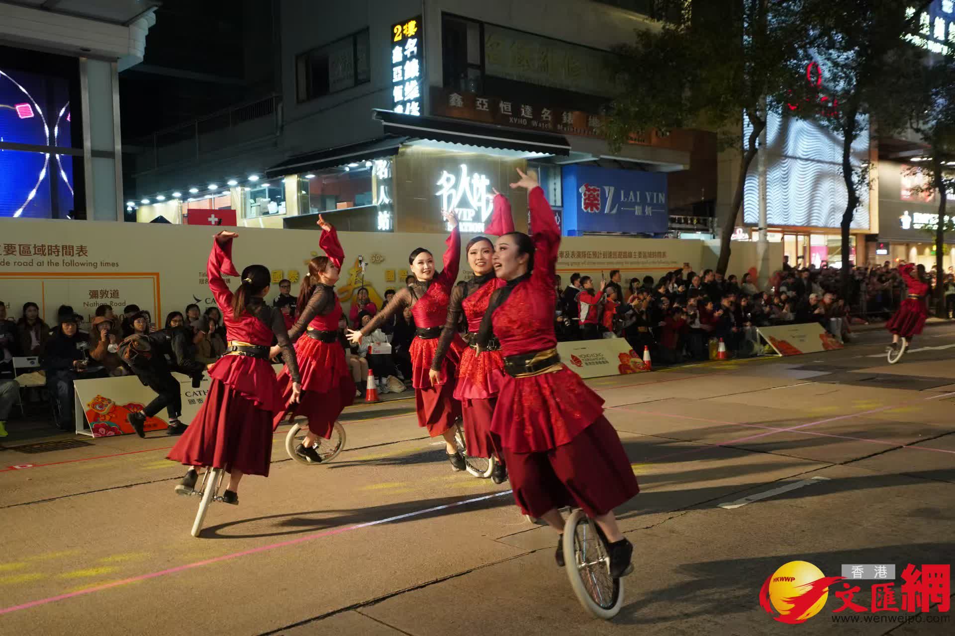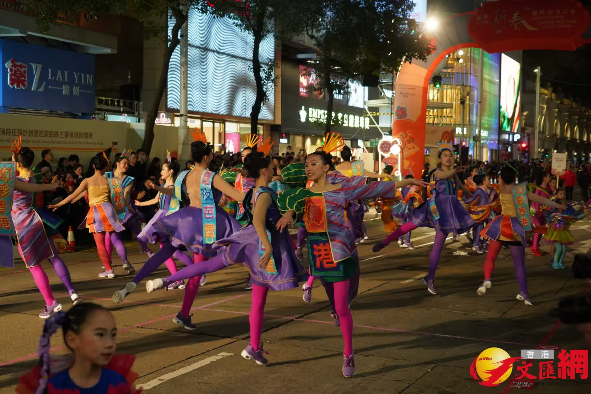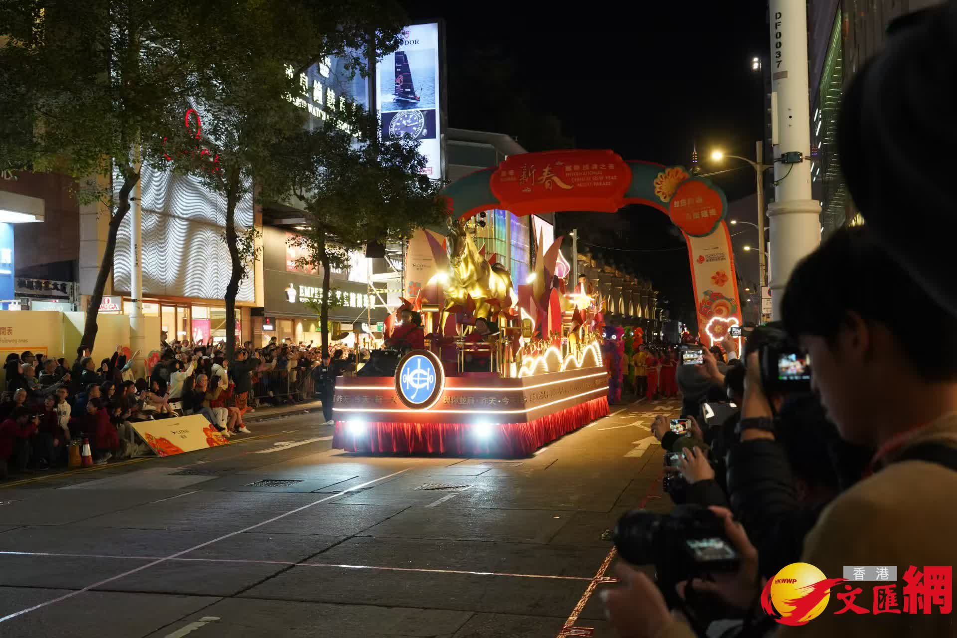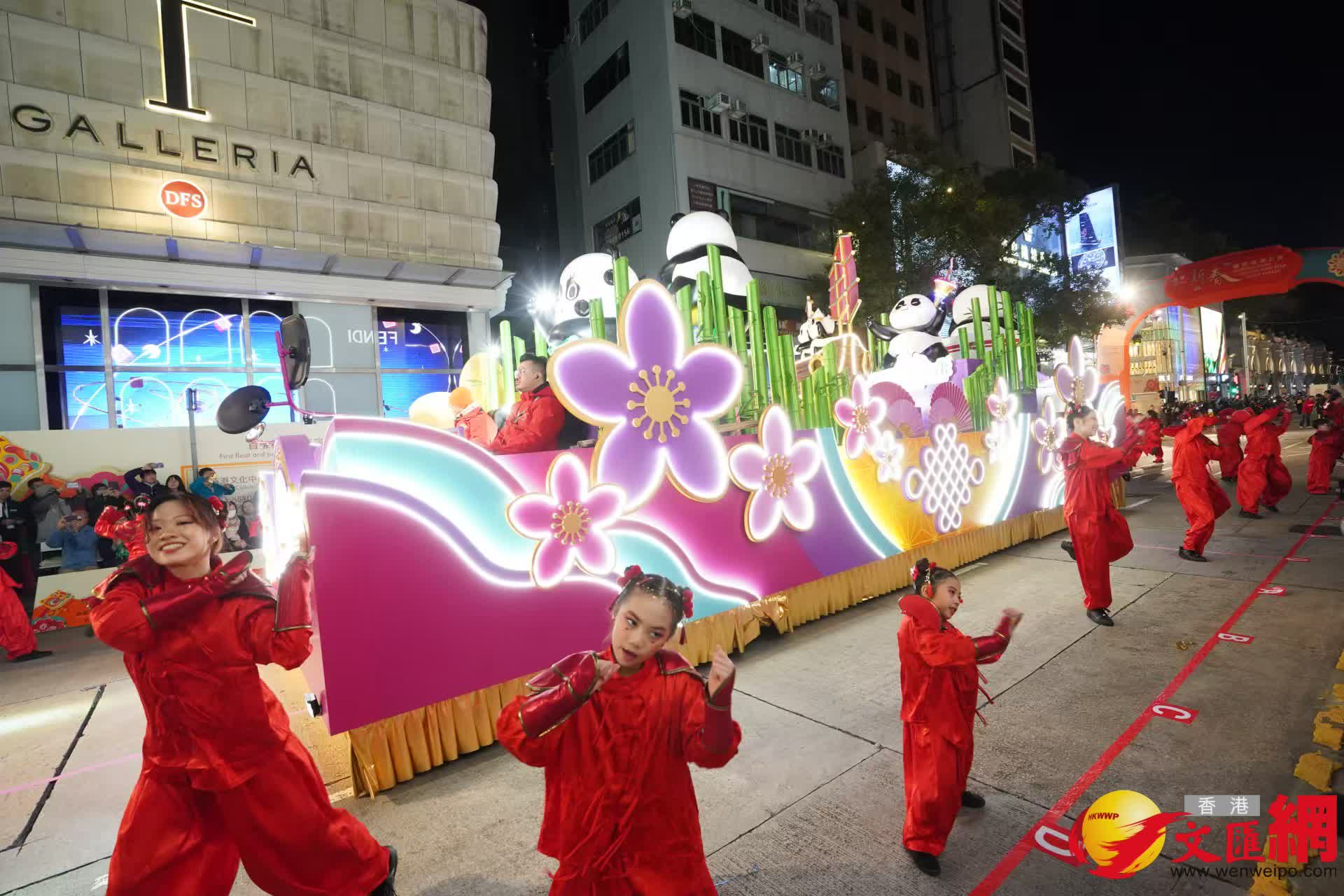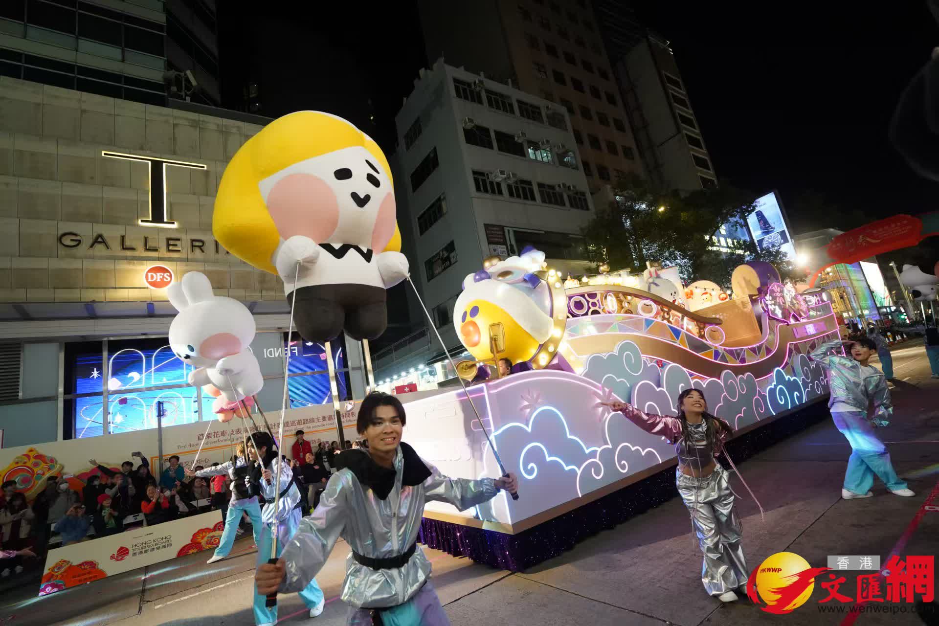 「新春花車巡遊匯演」今晚(29日)8時在尖沙咀一帶舉行。別開生面的花車巡遊、街頭表演派對及花車展覽,為觀眾送上新春祝福。(香港文匯報記者曾興偉攝)