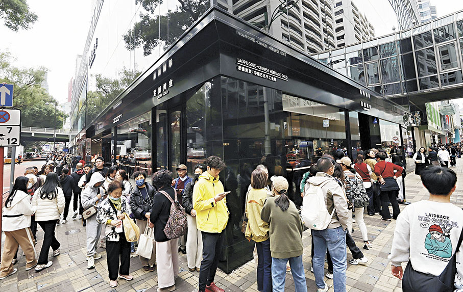 香港文匯報記者又發現,有內地品牌的金店門前人頭湧湧,排起近百米長龍。來自珠海的張先生表示,受社交媒體影響,今次特地到尖沙咀的金店前嘗鮮與體驗,「聽說香港店的種類更多,就想過來看看,預計今次會消費數萬元,主要是買首飾。」