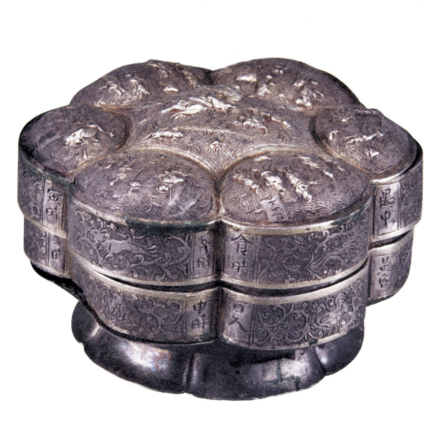 而陝西法門寺出土的「鎏金人物畫銀香寶子」,是唐代專門用來盛放香料的容器。它們大小、形制相同,但腹壁各鏨刻4幅不同的人物畫。在其中一幅人物畫上,可看到一條大蛇口含寶珠贈男子的畫面,講述的是《搜神記》中「隋侯得珠」的故事。據悉,隋侯是先秦時期隋國國君,他發現一條巨蛇受了傷,便命人為其敷藥療傷,使巨蛇恢復體力。之後巨蛇在江中銜着珍珠,以報答隋侯的救命之恩。這件文物不僅蘊含着知恩圖報的寓意,也具有教化人們向善的意義。