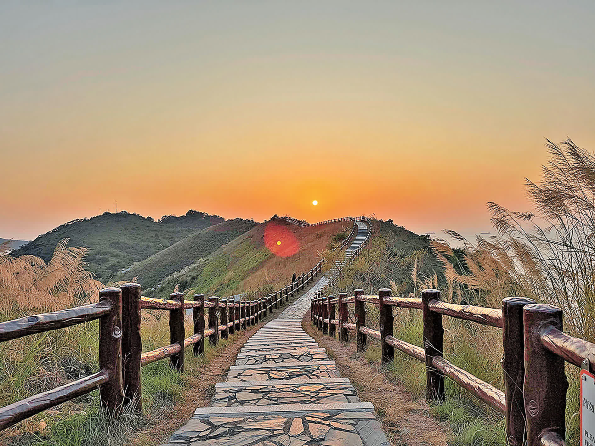 通往觀景台的紅欄山徑是熱門拍照打卡位,山徑是一條長長的石板步道,步道兩側設有搶眼的紅色欄杆,在碧海藍天與翠綠景致的映襯下,巧妙地搭配出了一幅色彩鮮艷的畫作,尤其是日落時分,景色更是美不勝收。