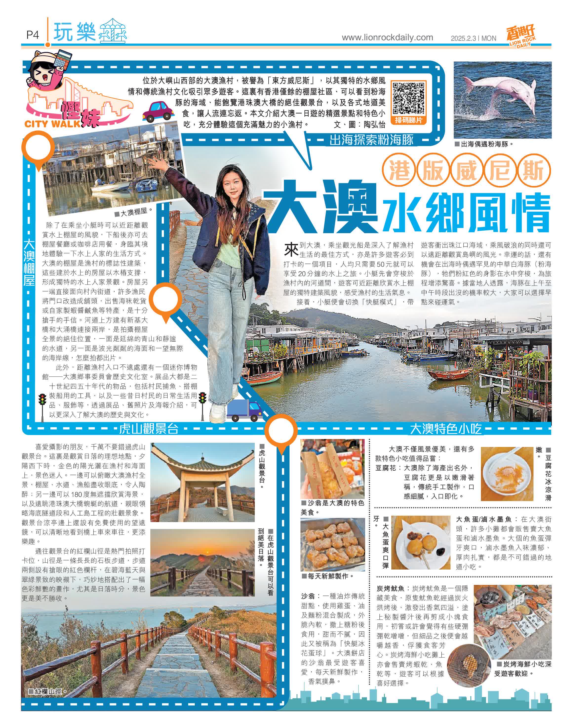 位於大嶼山西部的大澳漁村,被譽為「東方威尼斯」,以其獨特的水鄉風情和傳統漁村文化吸引眾多遊客。這裏有香港僅餘的棚屋社區、可以看到粉海豚的海域、能飽覽港珠澳大橋的絕佳觀景台,以及各式地道美食,讓人流連忘返。本文介紹大澳一日遊的精選景點和特色小吃,充分體驗這個充滿魅力的小漁村。