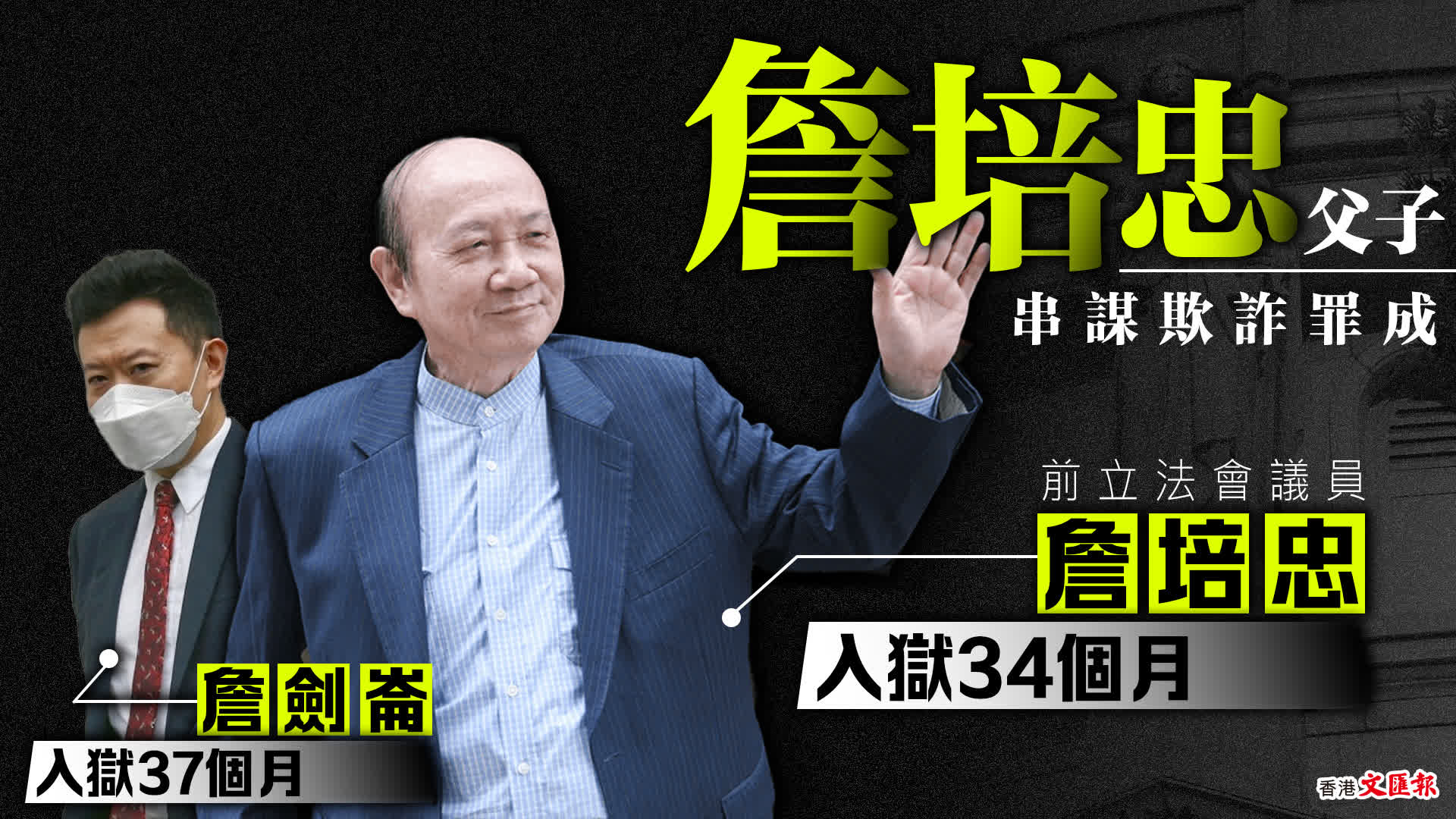 前立法會議員詹培忠及兒子詹劍崙因串謀欺詐罪成,分別被判監34個月及37個月。