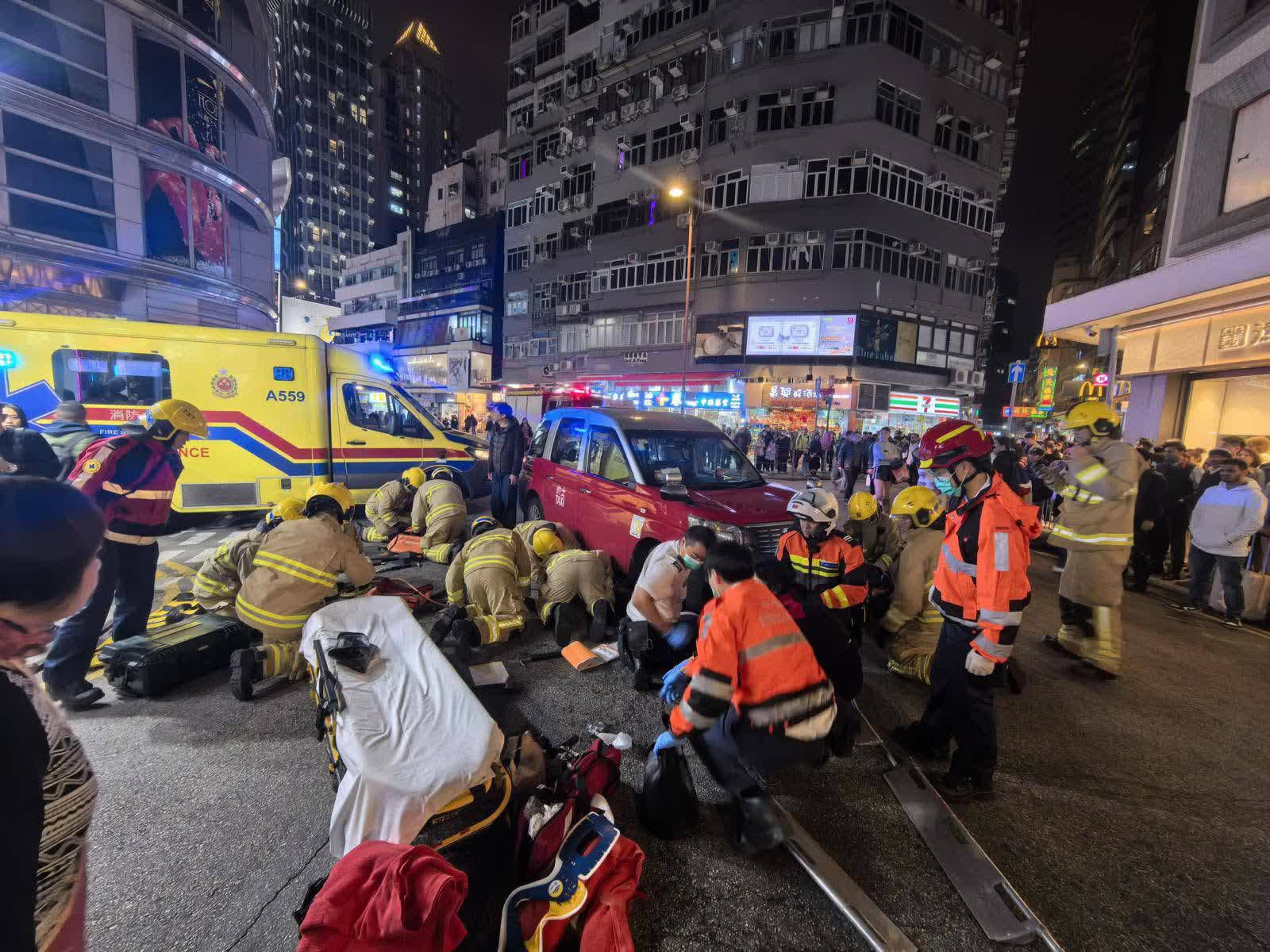 香港文匯報訊(記者 蕭景源)尖沙咀今晚(3日)約7時發生嚴重交通意外。一輛的士駛至加拿分道與堪富利士道交界時,疑收掣不及撞中一名女子,女子更被捲入車底當場被困,途人見狀紛紛報警。大批消防員和救護員趕抵合力救出傷者,惟傷者已陷入半昏迷急送伊利沙伯醫院救治。