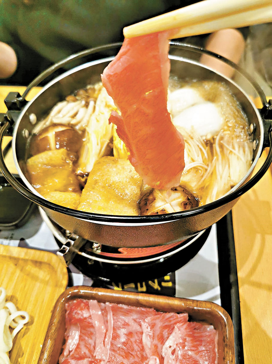 品嘗壽喜燒,除了和牛,還有幾款不同的追加配料任你揀,如和牛丸、章魚餅、溫泉蛋等,總有一款合你口味。最後,用壽喜燒鍋的精華湯底煮烏冬,或者拌白飯再加多隻溫泉蛋,也是不錯的配搭。