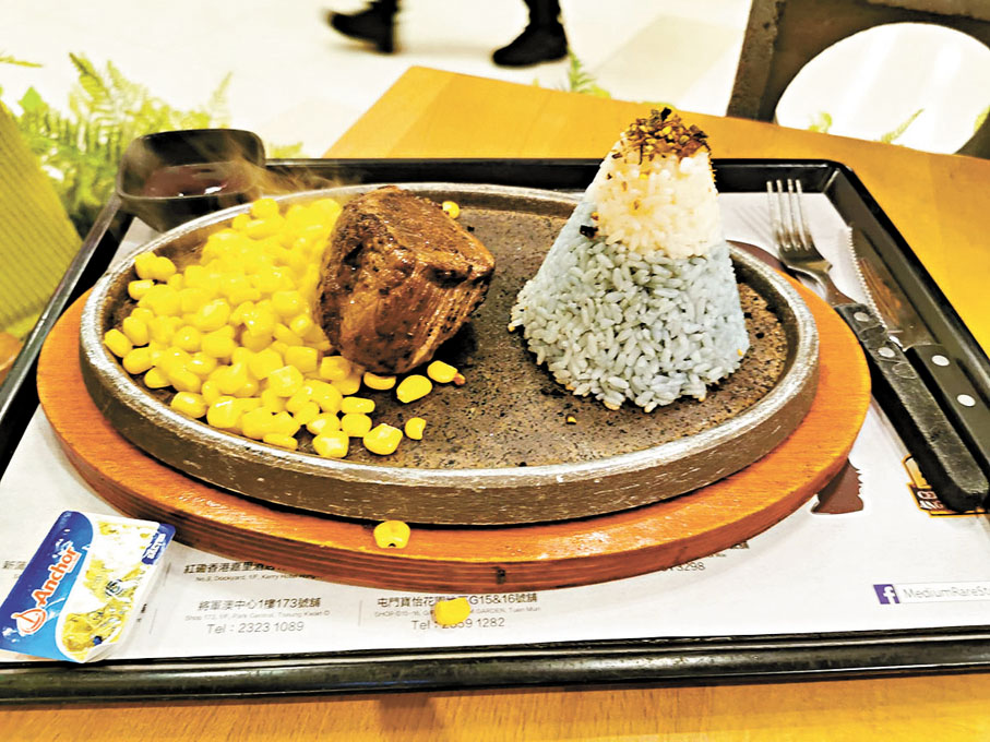 還有,餐廳新出的「富士山石板牛扒飯」,將日本米煮成白飯後,堆出藍白配的富士山形態,加上大大塊牛扒,還有溫泉蛋及香脆粟米粒,石板上分量十足,再配富士山特飲,將日本景色與美食結合,來個全方位視覺與味蕾的大滿足。