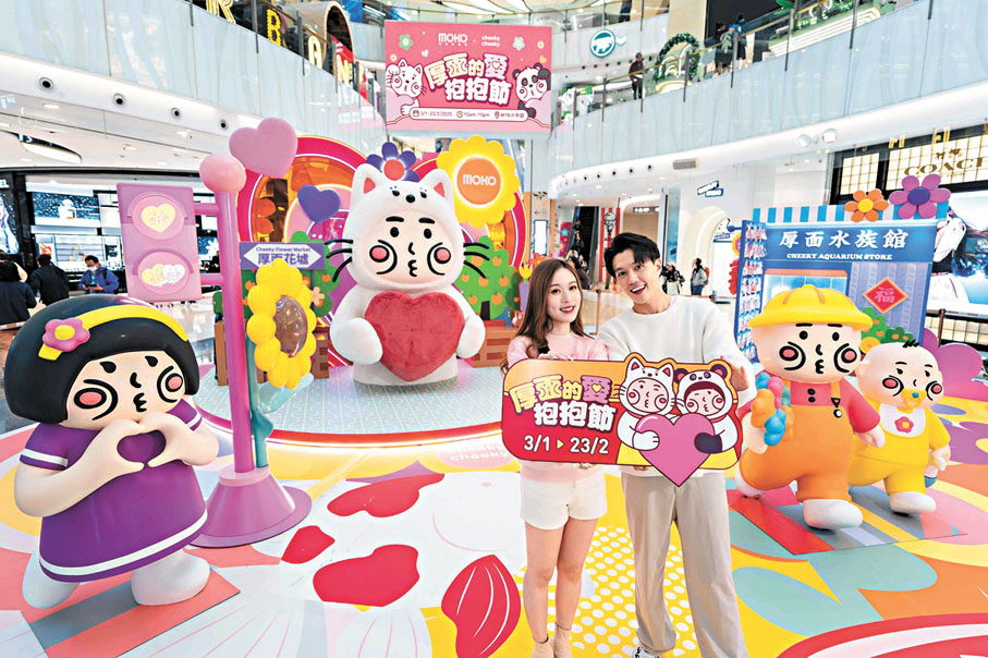 專家說一天抱抱8次能讓人減壓,有助身體釋放「天然嗎啡」安多酚。為了帶給大家充滿愉悅、溫暖和愛的新春及情人節,以及繼續借勢熊貓經濟,即日起至2月23日,旺角 MOKO新世紀廣場呈獻「MOKO×Cheeky Cheeky厚面的愛抱抱節」,邀請了本地人氣插畫家Cheeky Cheeky厚面子,於場內打造筆下首個旺角限定主題裝置,以花墟、金魚街等經典本土地標為靈感,帶大家玩盡五大繽紛街頭風打卡蒲點,當中必影巨型厚面Cosplay招財貓及大熊貓,以愛的抱抱祝願新年好運。同時,2月14日情人節當天,商場為大家帶來「厚」浪漫!情人節粉紅泡泡賞,於場內以電子消費滿指定金額,即可免費獲贈絨布仿真玫瑰花一支。