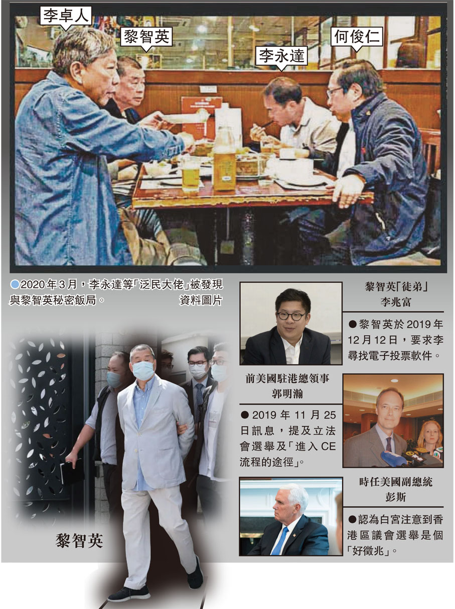 ●2019年12月13日,黎智英與「泛民」等人用膳,眾人同意使用網上軟件投票,當日飯局有林卓廷、李永達、李卓人等人,戴耀廷及區諾軒不在場。