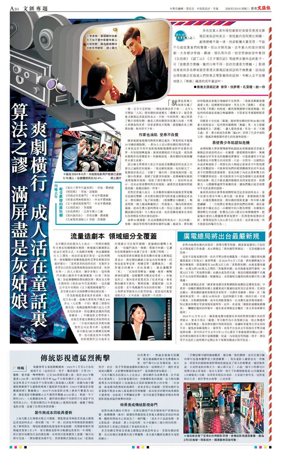 「回頭看看,我的閒暇時間好像都用來刷微短劇了,沉浸在劇情裏,我覺得自己就是大女主,根本放不下。」在北京一家企業做廣告設計的王小姐告訴香港文匯報記者,國家廣電總局的新規在一定程度上,會促進微短劇行業健康發展,多出精品。「那我肯定特別歡迎,這樣對我在設計方面也會有啟發。」