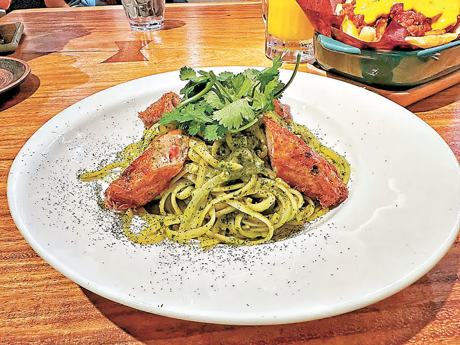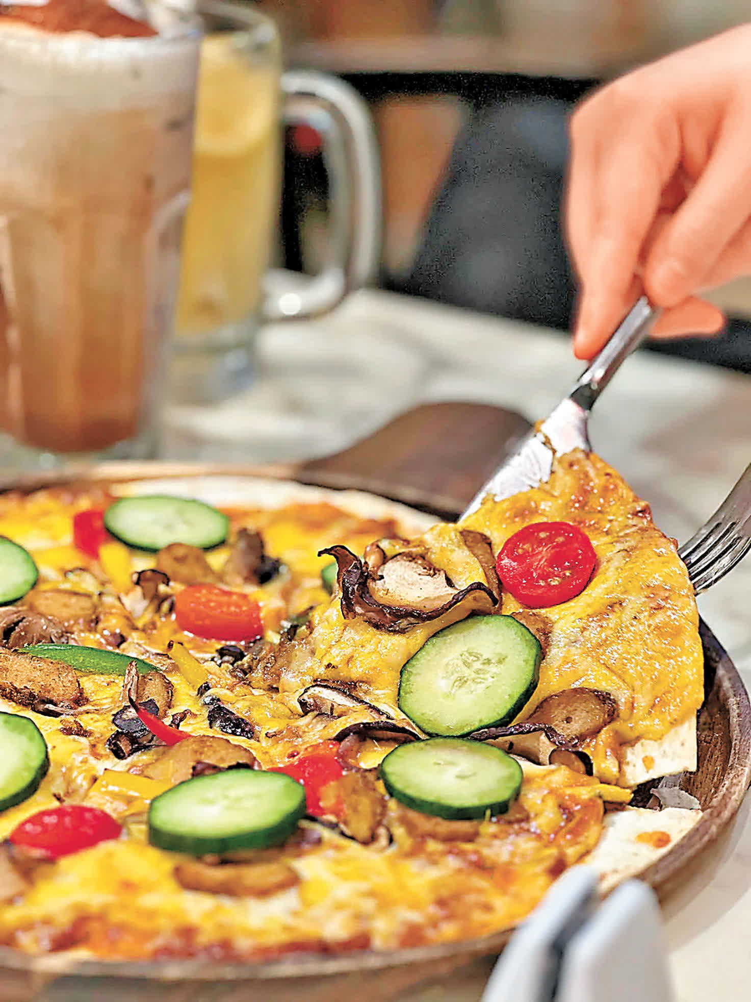 推介菜式包括Wasabi三文魚沙律配油醋汁(蛋),素三文魚有韌勁,沾上Wasabi味沙律醬,疑幻疑真;花枝魚餅(奶),泰式風味,好吃又彈牙,口感非常唔錯。伴有素蝦片,脆卜卜。還有OVO沙嗲薄餅( 辣、蛋、奶)和芫荽香菜蝦卷扁意粉( 蛋、五辛)前者充滿香草味,香菜蝦卷十分之出色;後者有港式沙嗲薄餅滋味,比較惹味。還有以梅菜流心蛋及番茄粒製成的梅菜薄餅,以及採用不含膽固醇素肉製成的日式吉列豬扒咖喱飯,根本完全唔覺得自己食緊素食。